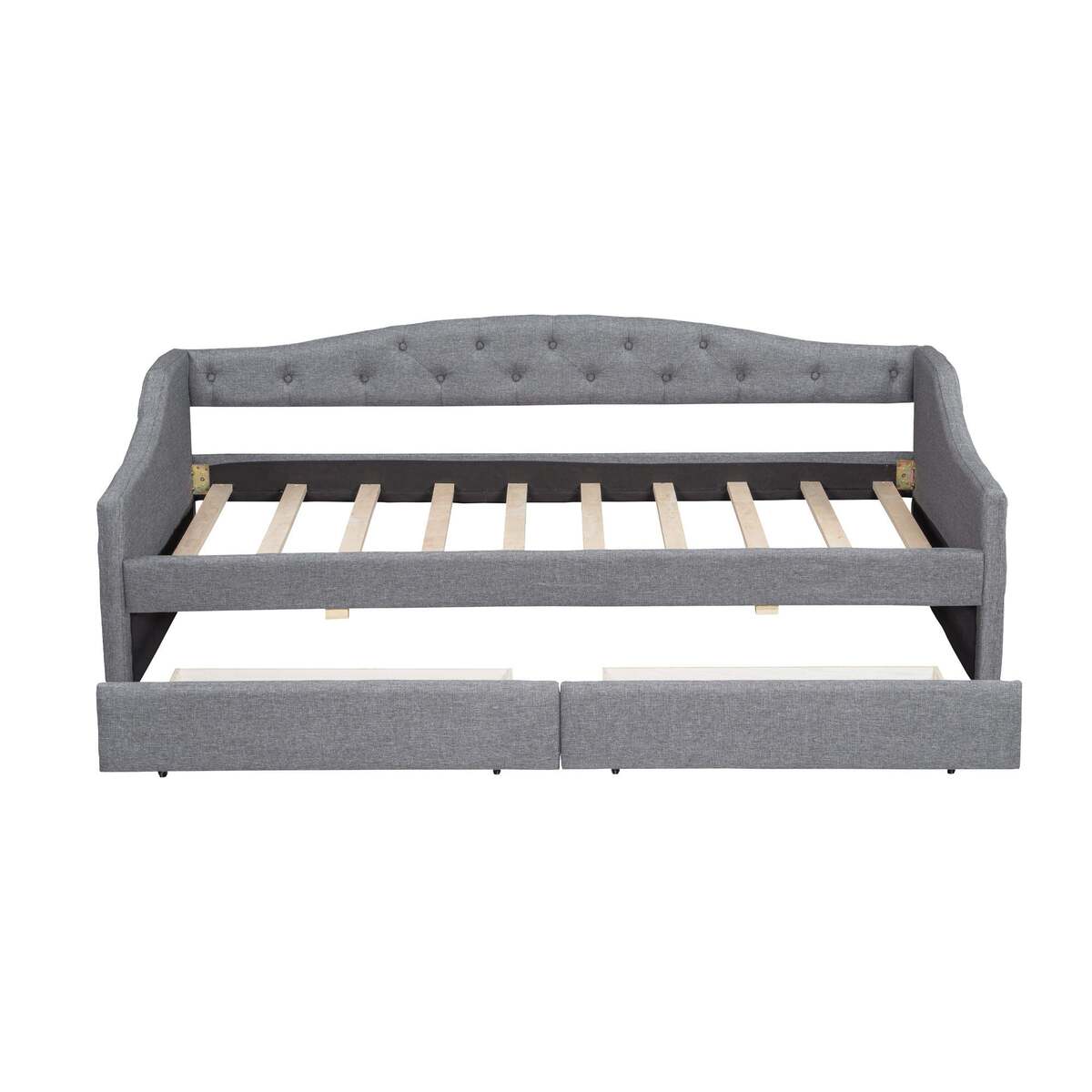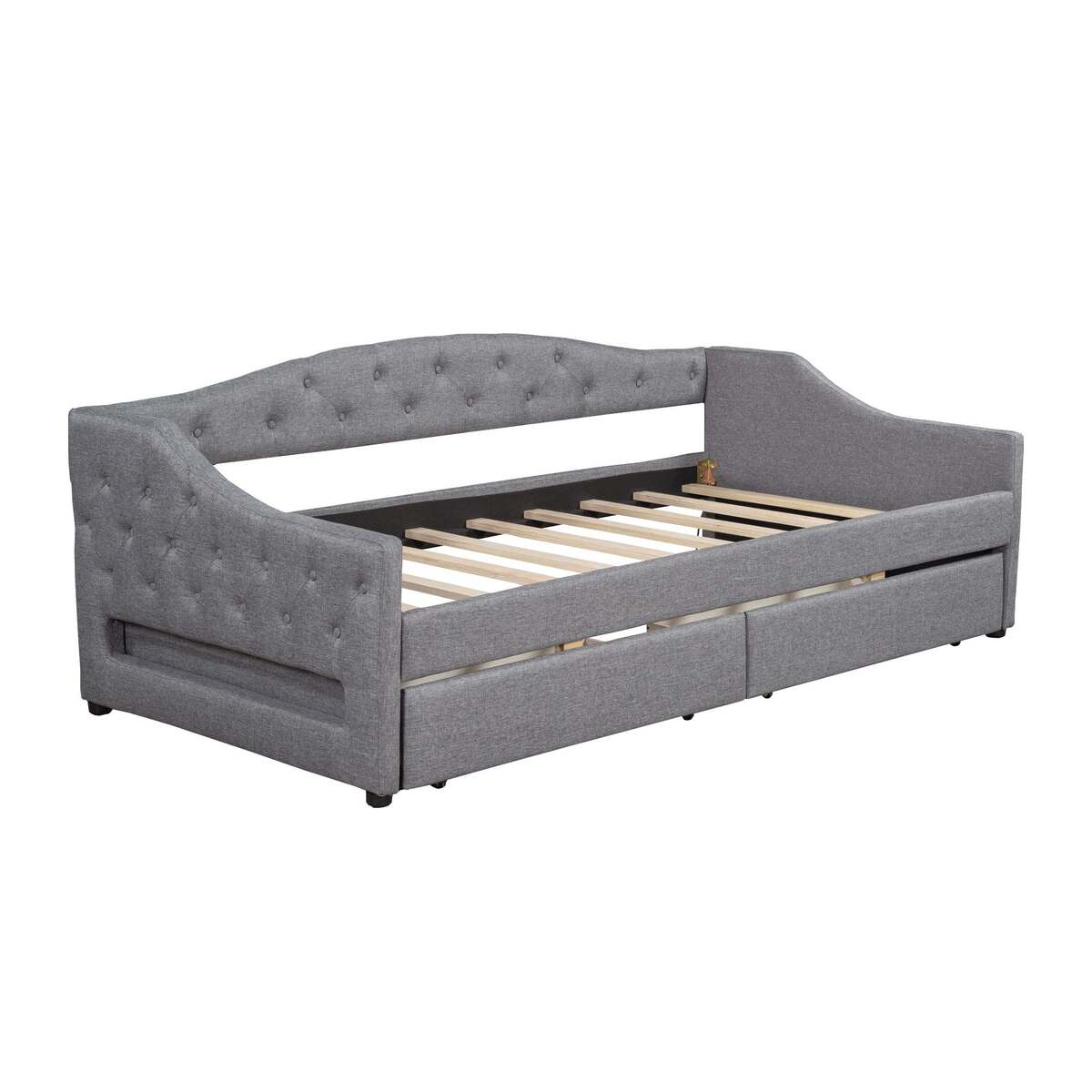Gray Linen Twin XL Daybed: Upholstered, LED, 2 Drawers