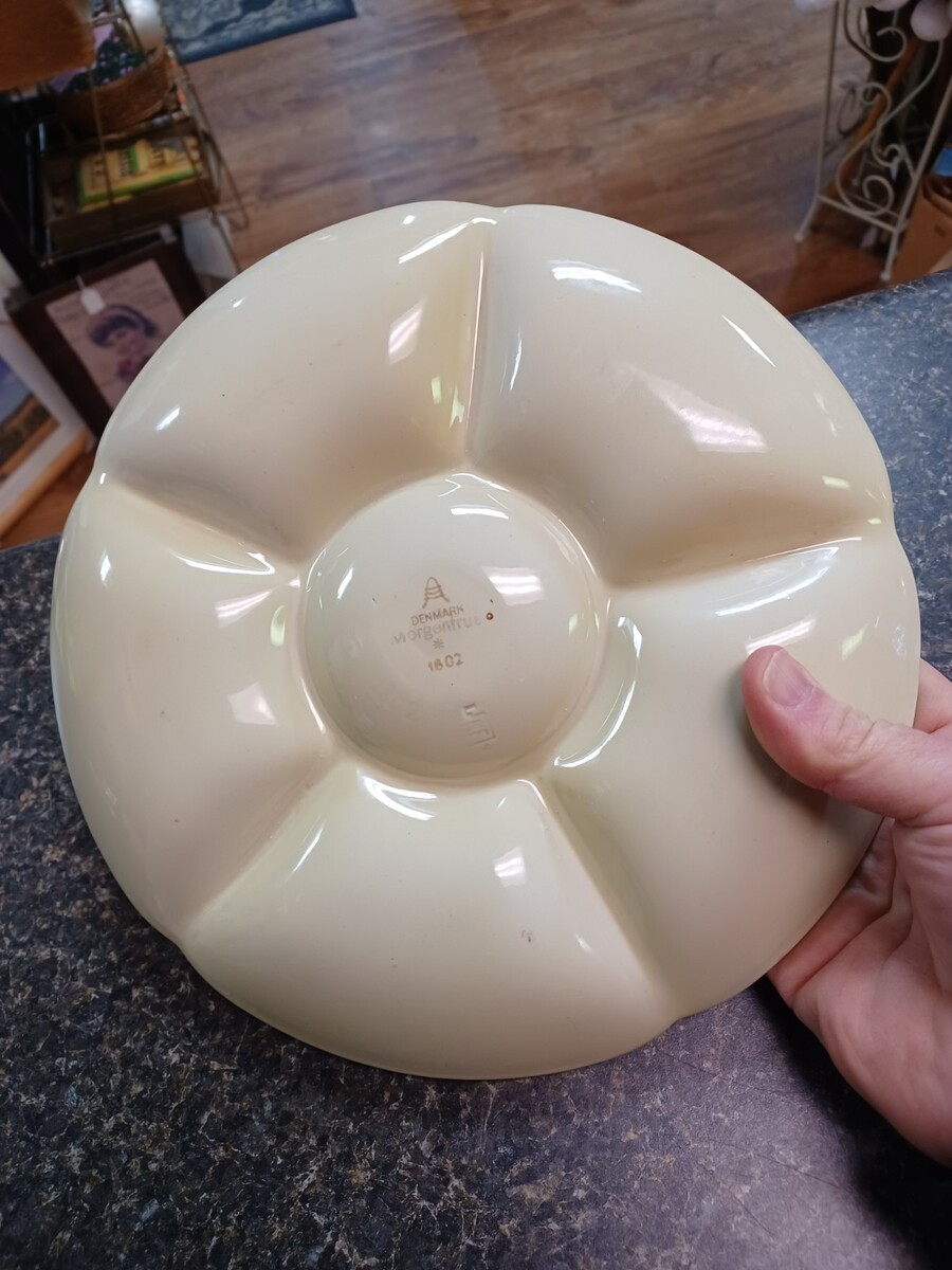 Vintage Royal Copenhagen Morgenfrue Marigold Zinnia Divided Chip Dip Plate
