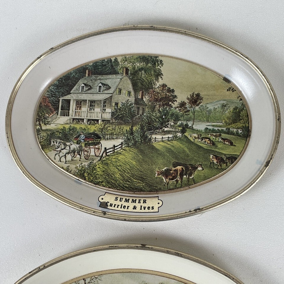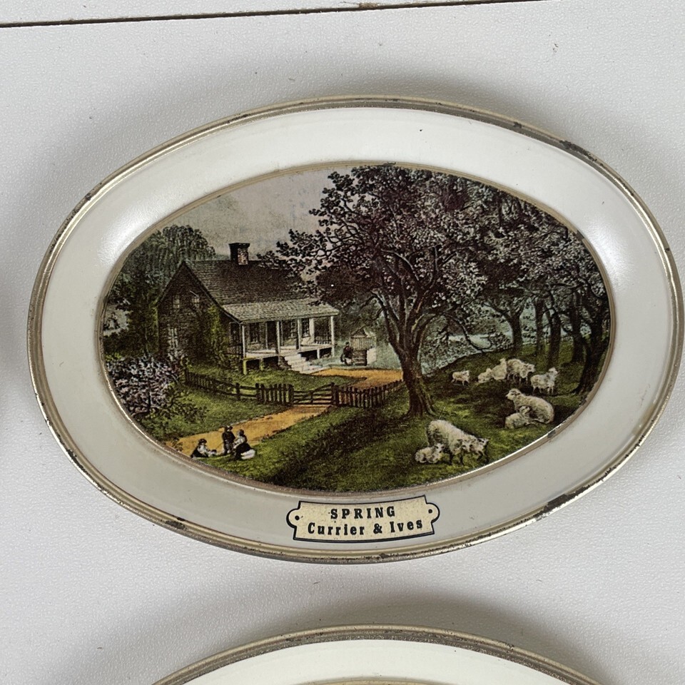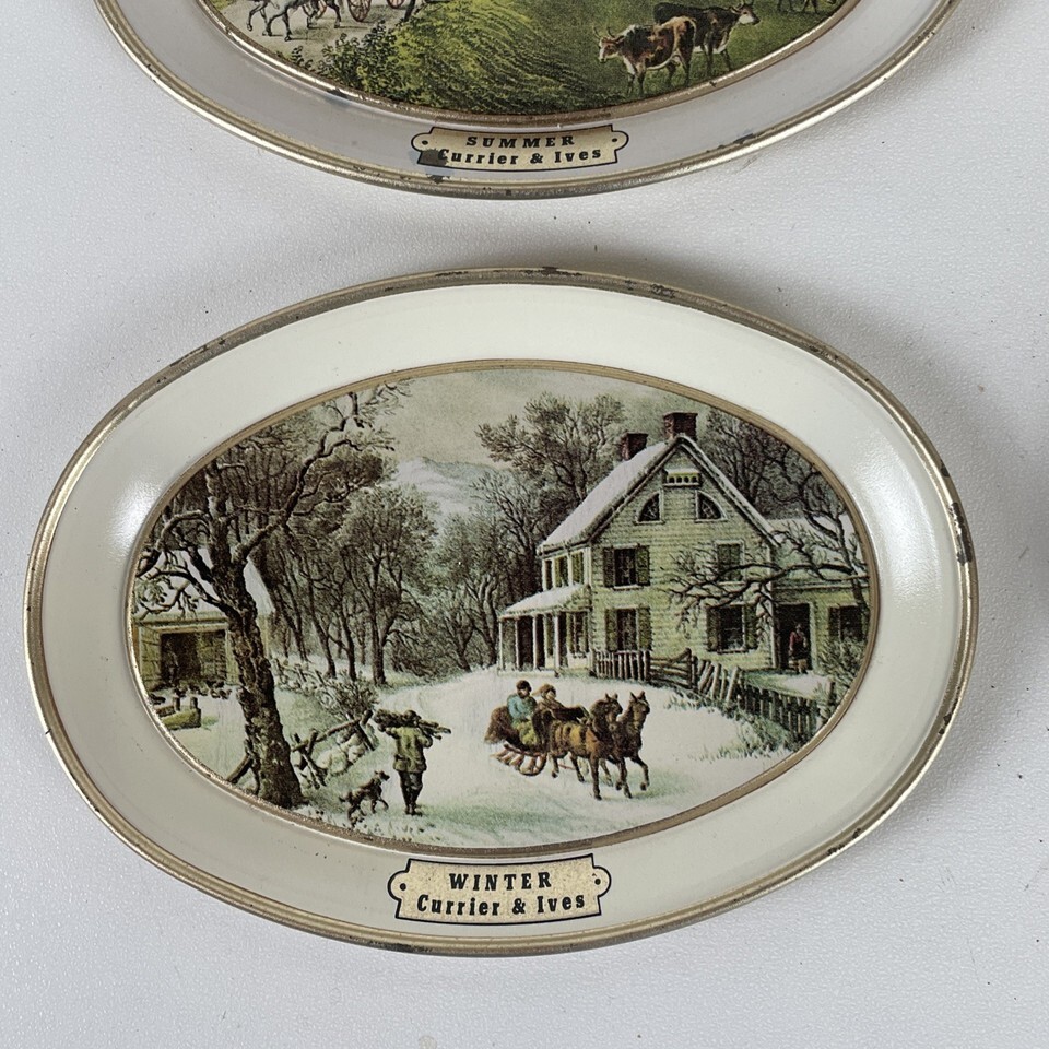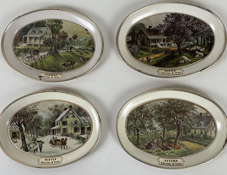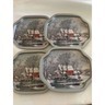 Currier and Ives Tin Trays American Homestead 4 Seasons Fabcraft USA Set of 4