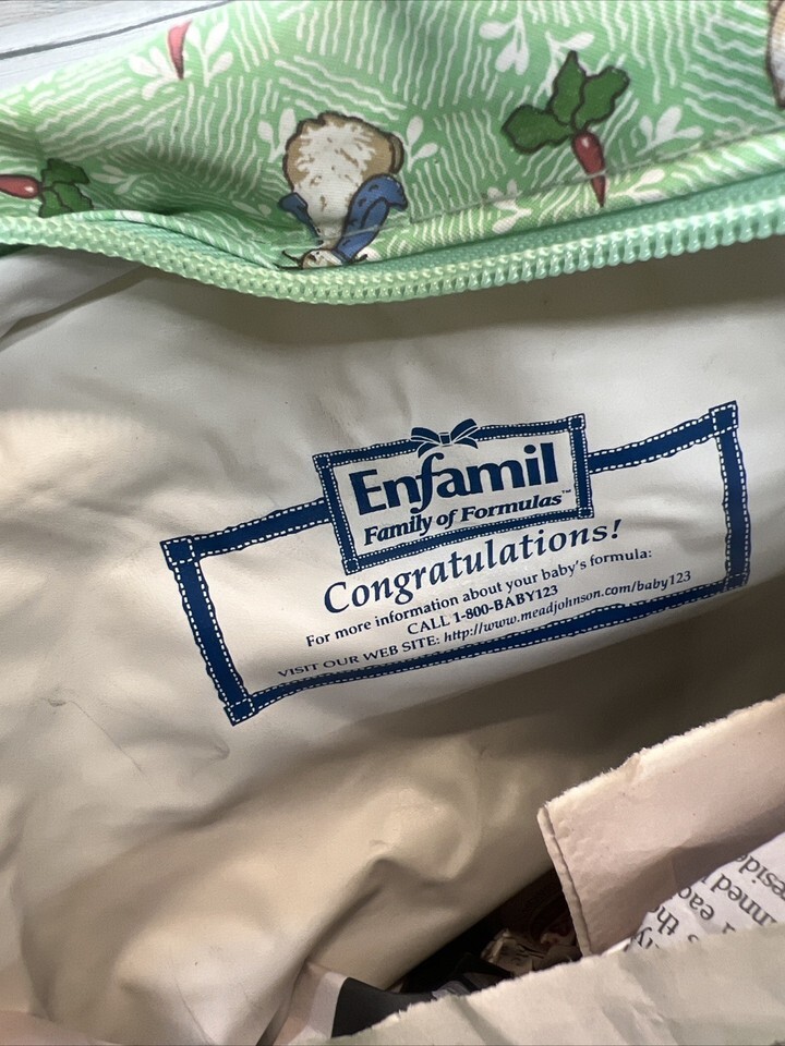 Peter Rabbit Beatrix Potter Enfamil Diaper Bag Unisex Mint Green Vinyl RARE Vtg