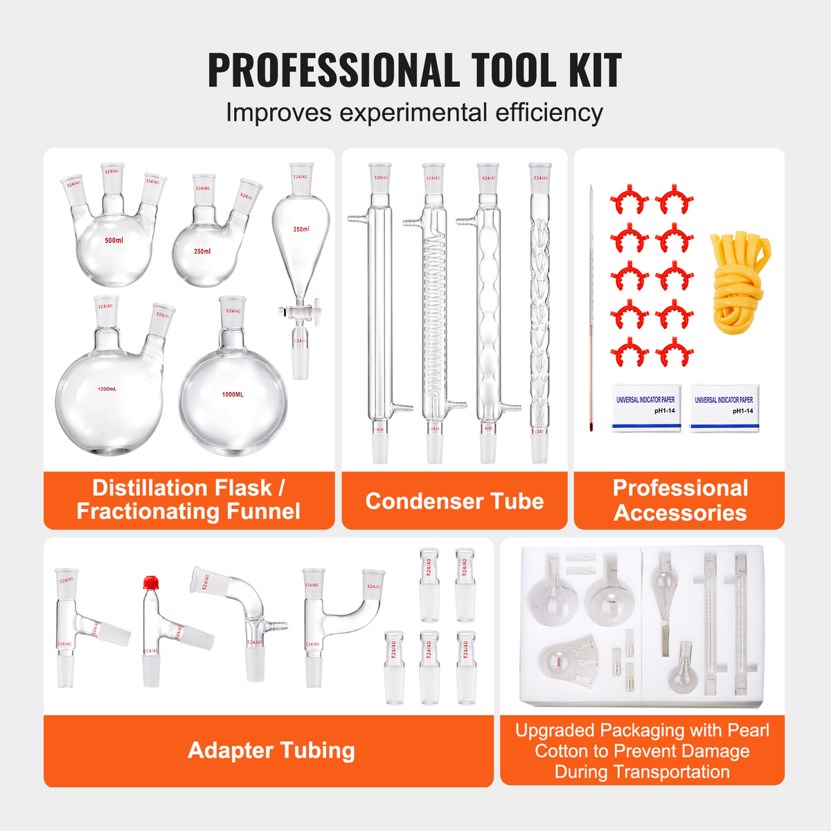 VEVOR Lab Distillation Kit, 3.3 Boro Lab Glassware Distillation Kit, 32 pcs
