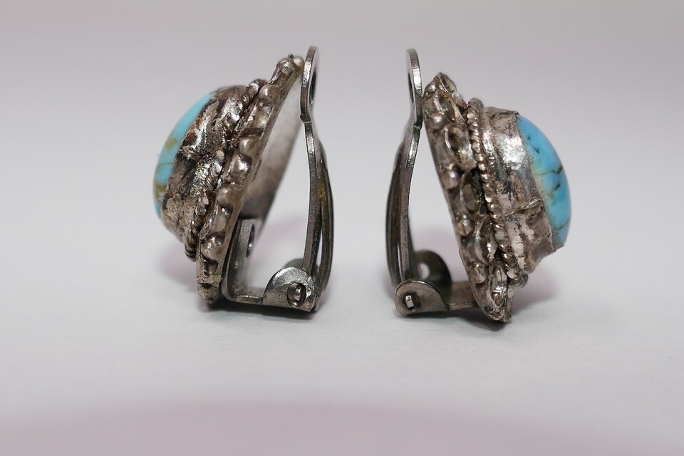 Up for sale is a pair of Sterling Silver Turquoise Marcasite Clip On Earrings. These measure approx. 3/4" long.