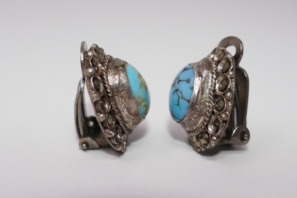 Sterling Silver Turquoise & Marcasite Clip On Earrings