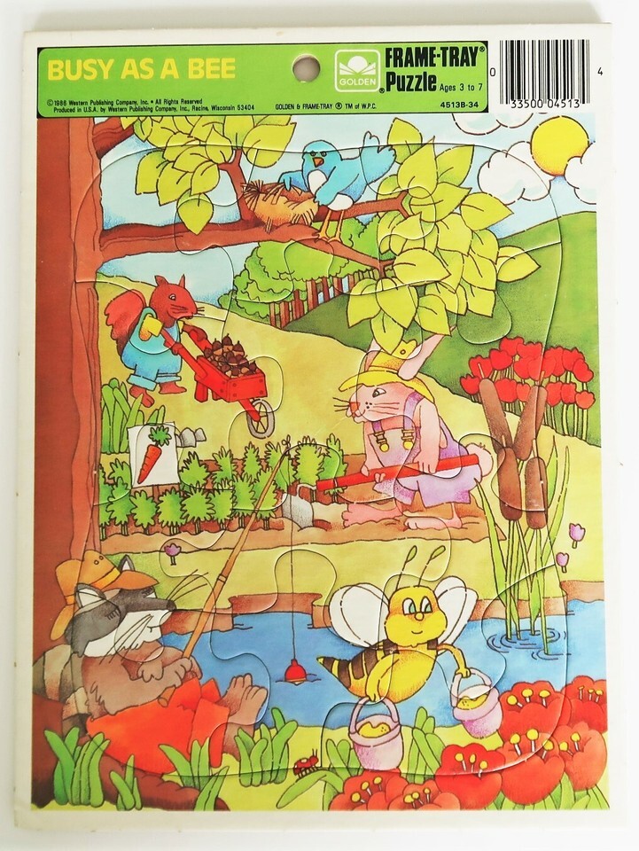 Vintage 1986 Golden Books Frame Tray Puzzle Busy As A Bee Western Publishing