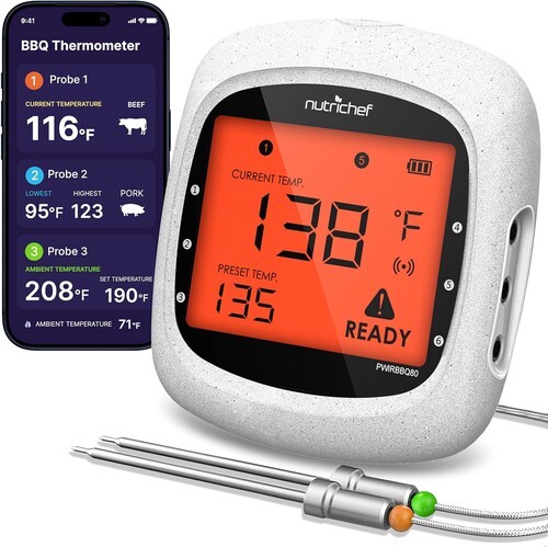 NutriChef Bluetooth Wireless Meat Thermometer for Grilling & Smoking (Open Box)