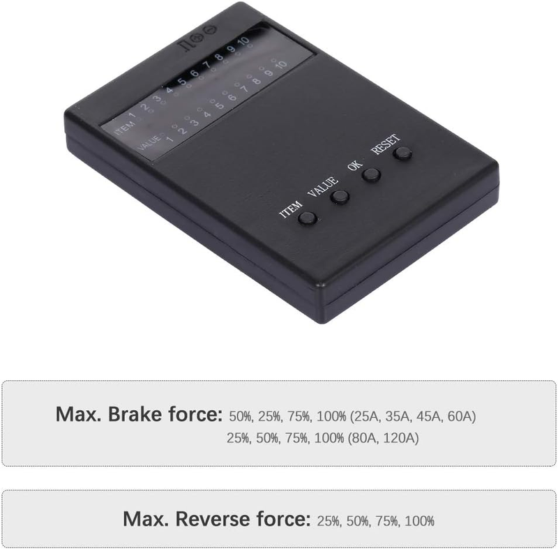 Get Better Driving Experience: It can program the maximum braking force(50%, 25%, 75%, 100% (25A, 35A, 45A, 60A), 25%, 50%, 75%, 100% (80A, 120A)), max. reverse force(25%, 50%, 75%, 100%), let you better control your RC car and get a better driving experience.