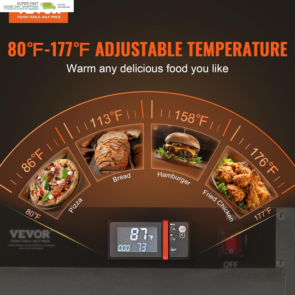 Keep Warm for a Long Time: The commercial hot box food warmer cabinet features an adjustable temperature range of 80?-177? with rapid heating and long-lasting warmth. Real-time temperature tracking and simple operation make it perfect for storing delicious, juicy cooked meats, pasta, crispy fried foods, fermented yogurt, and dried fruits and vegetables.