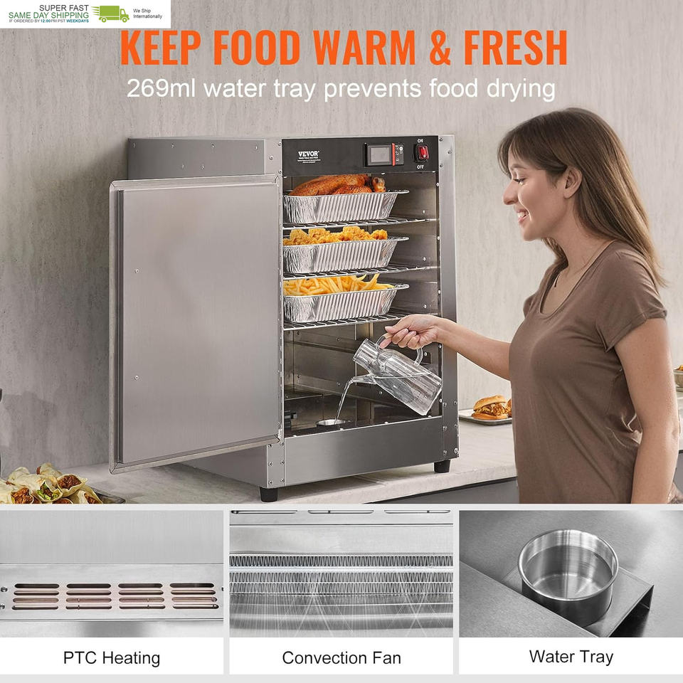 Our food warmer cabinet provides consistent temperature, keeping dishes warm and fresh without drying out, making your delicious food look like freshly cooked food.