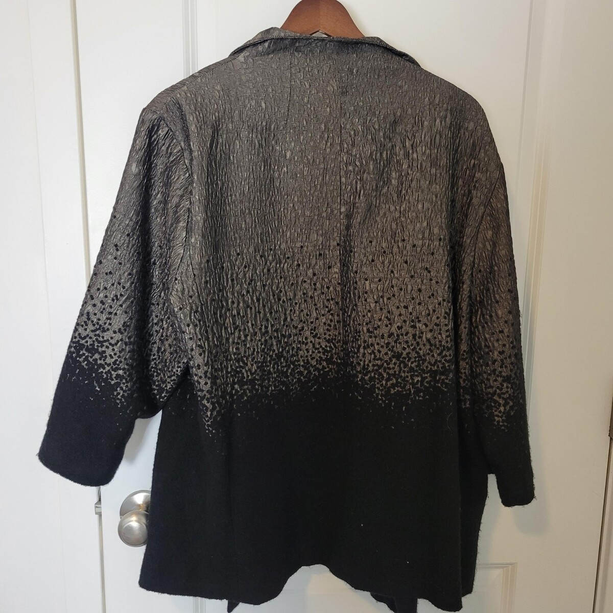 Eileen Fisher Women's Open Front Ombre Metallic Jacket XL Black Grey 3/4 Sleeve