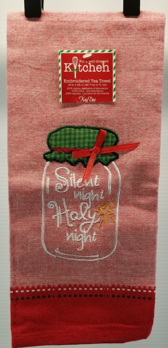 Silent Night Jar Embroidered 28" Christmas Holiday Kitchen Tea Towel Kay Dee