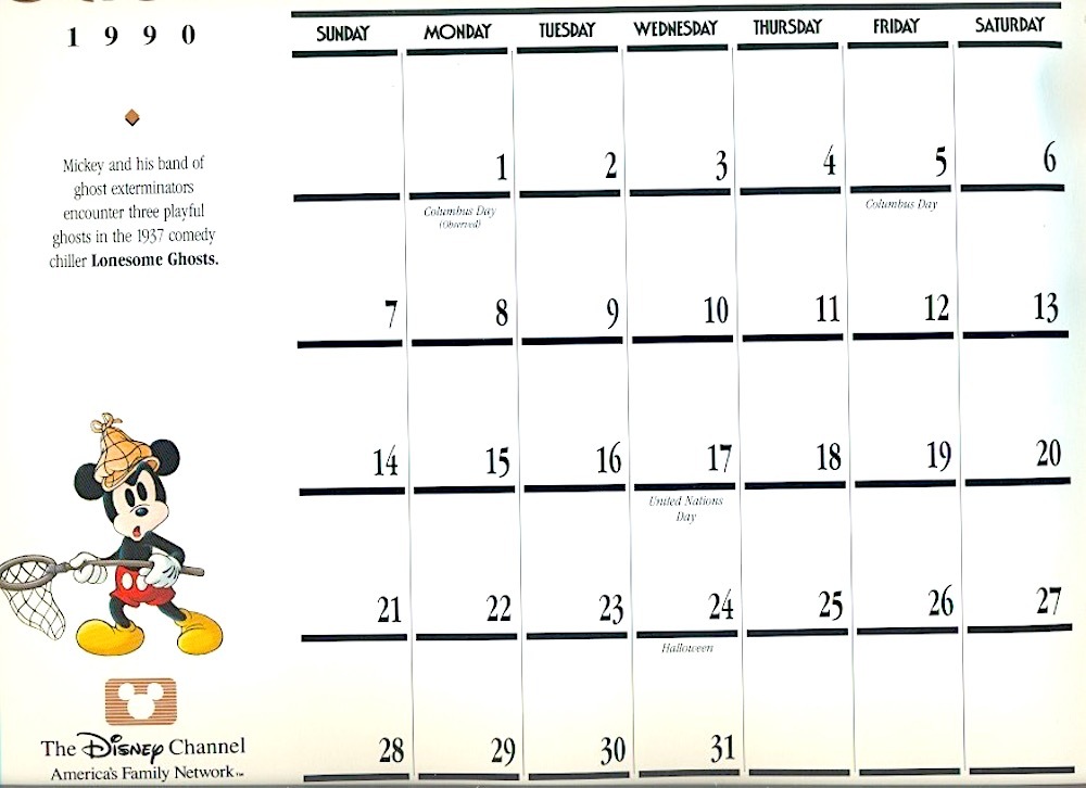 1990 DISNEY CHANNEL CALENDAR original and 30 similar items