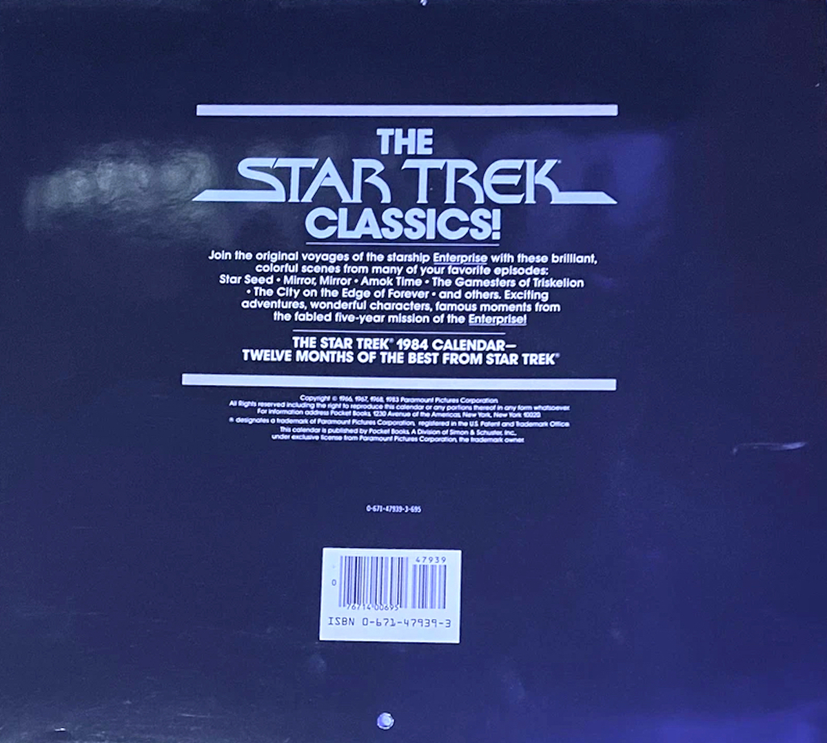 1984 STAR TREK original TV series first printing 12-month wall calendar