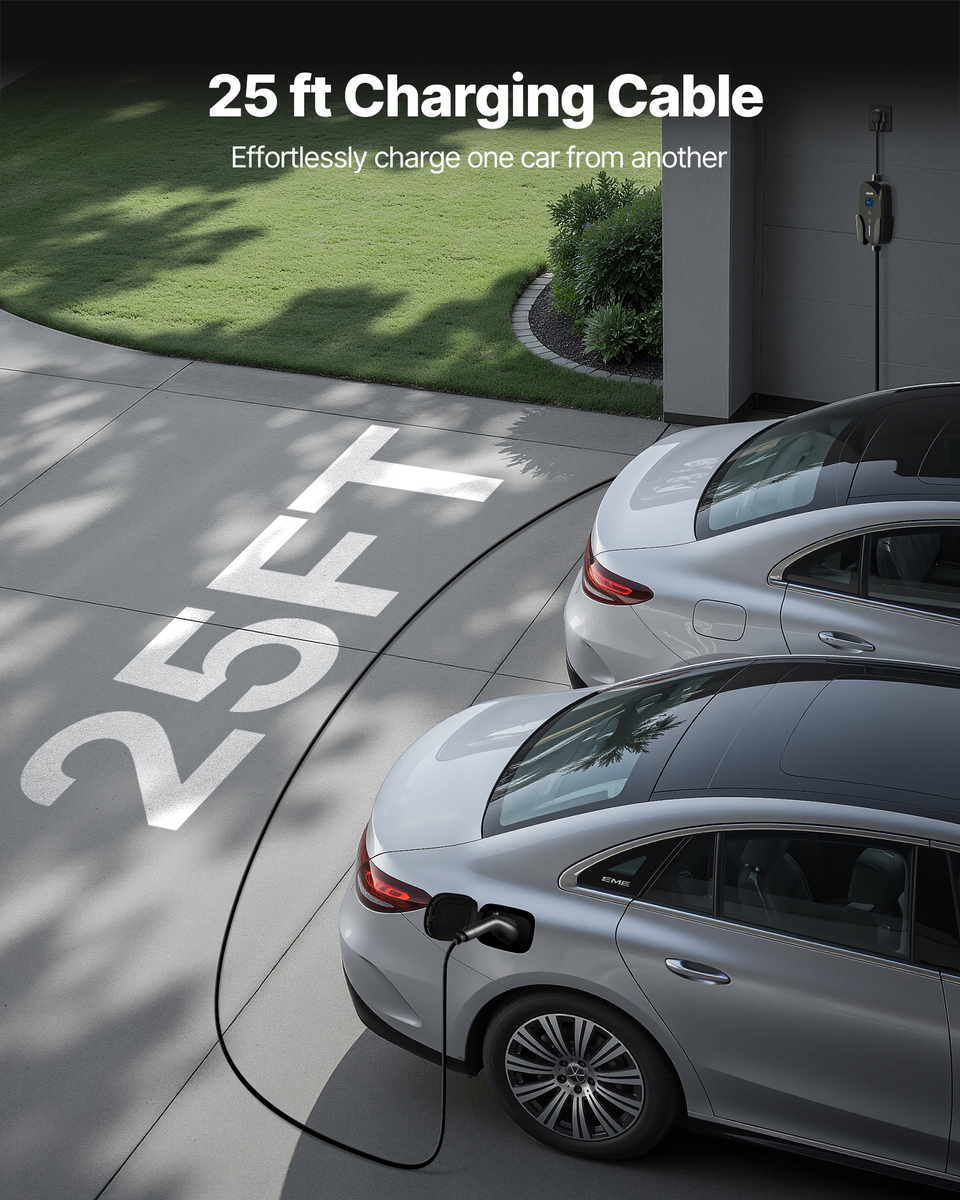 Universal J1772 Compatibility: Compatible with multiple electric and plug-in hybrid vehicles. This level 2 EV charger features a 25 ft cable, easily reaching across driveways or garages. Ideal for home with multiple EVs or shared charging stations