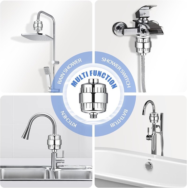 [20-STAGE FILTRATION] - The shower filter, equipped with KDF 55, Alkaline Ceramic Balls, Activated carbon, Calcium Sulfite and other filtering materials, ensures optimal water purification. Its 20-Stages filtration system can effectively reduce chlorine, fluoride, heavy metals and and other sediments.