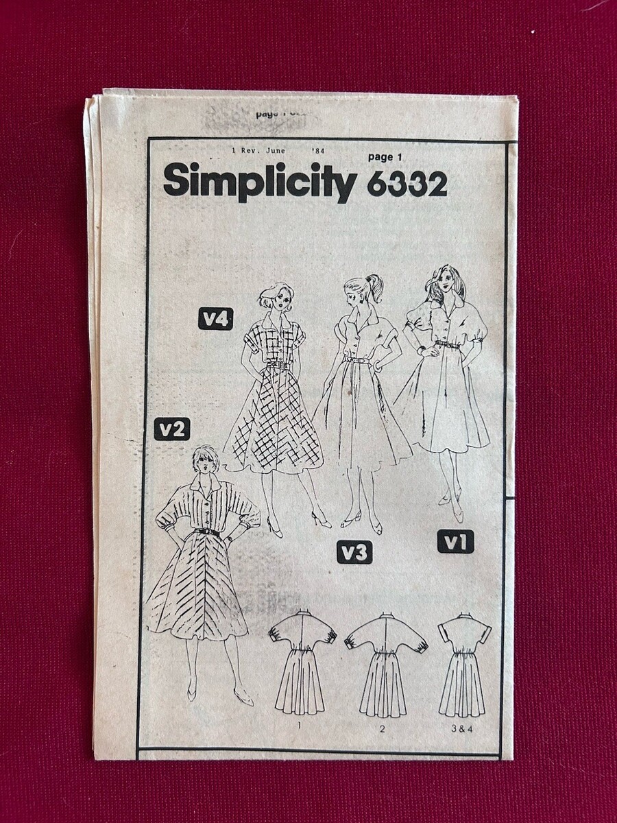 This vintage Simplicity pattern 6332 offers a classic pullover dress with a flared bias skirt, perfect for adult and teen women in sizes 10-14. The 1950s era design is uncut and in factory folds, allowing for the creation of a unique and timeless garment that captures the fashion of the past. Perfect for those looking to explore retro sewing projects and create their own nostalgic pieces.