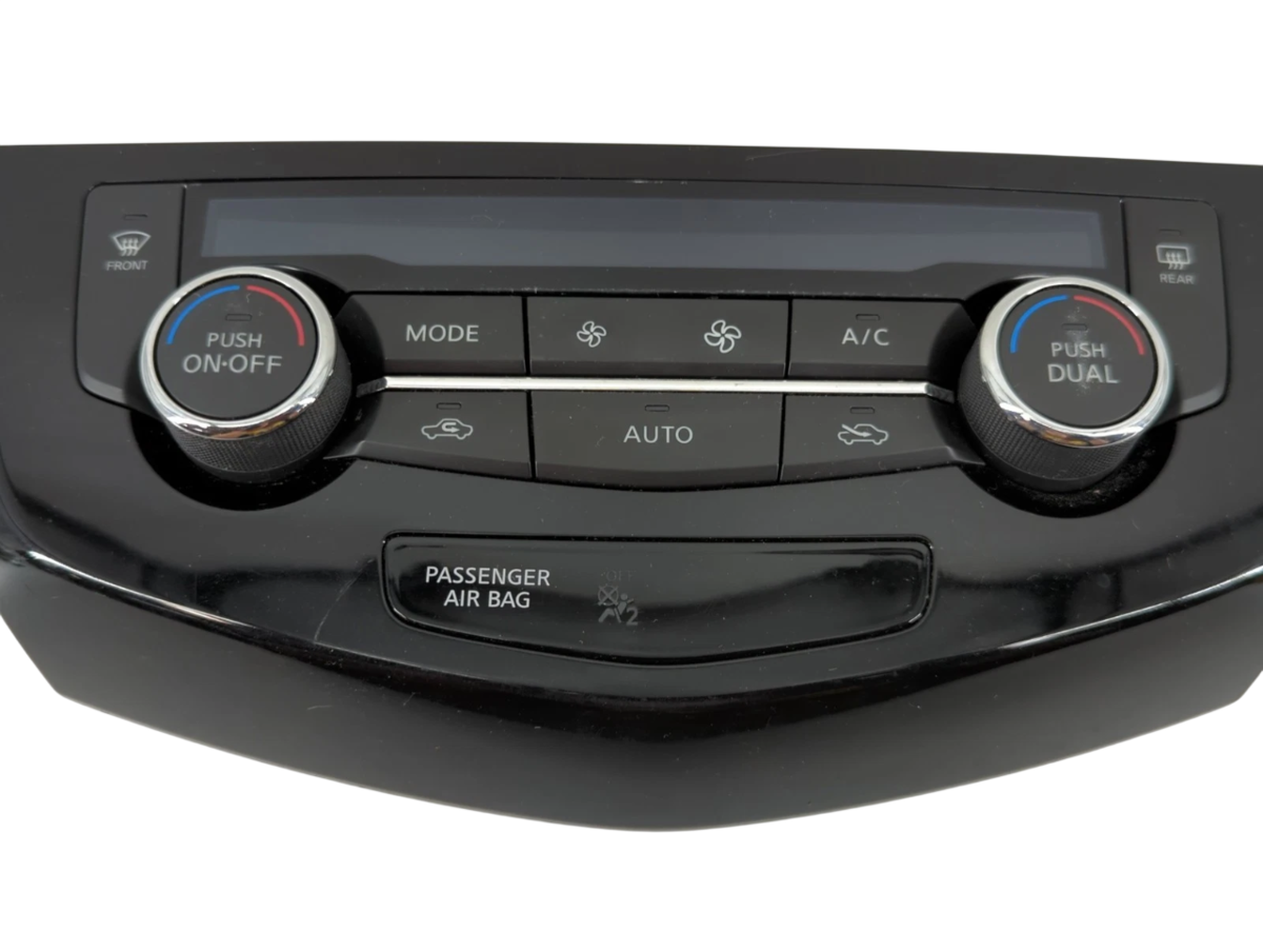 This OEM AC Heater Climate Control fits 2017-2020 Nissan Rogue SUV and carries part number 275006MA0A. It is designed to manage and control the function related to the part to ensure proper operation and performance. The part is in good used condition with normal wear from use, showing no cracks, broken connectors or buttons, or damage, and all mounting points are intact. This is a direct replacement OEM part and will be sent with proper tracking.