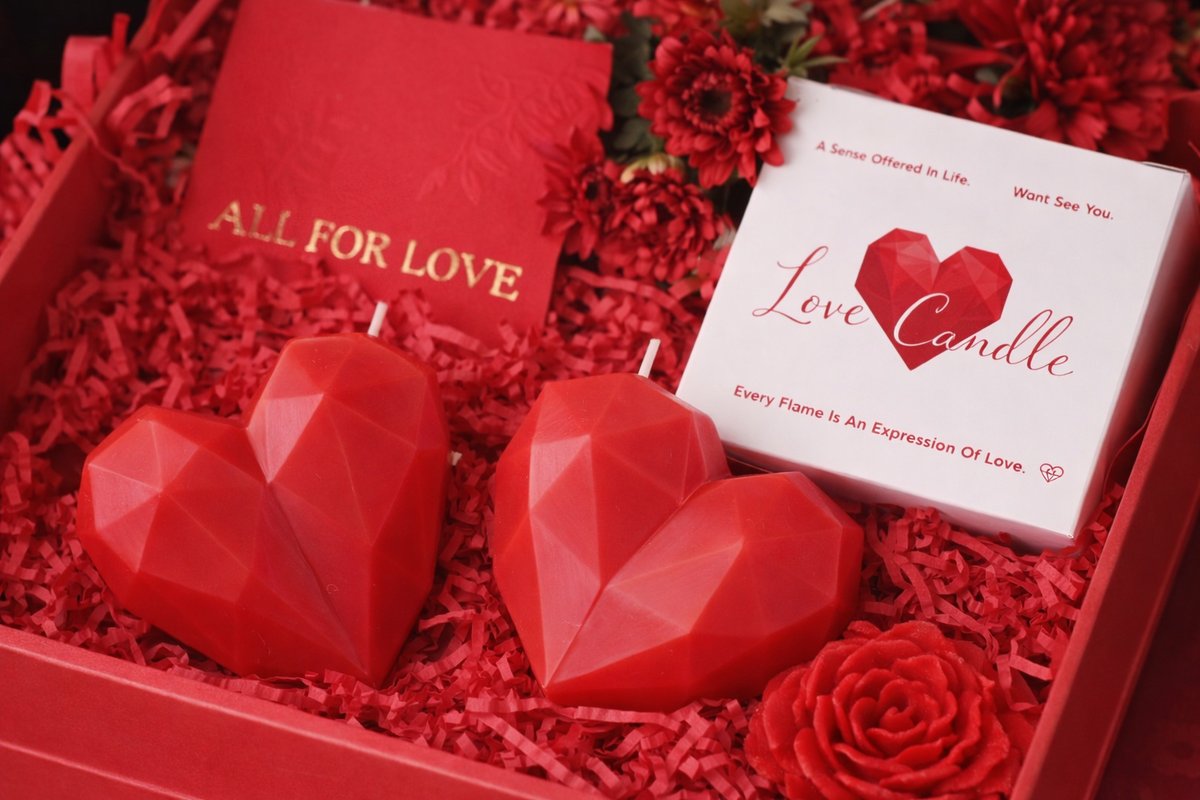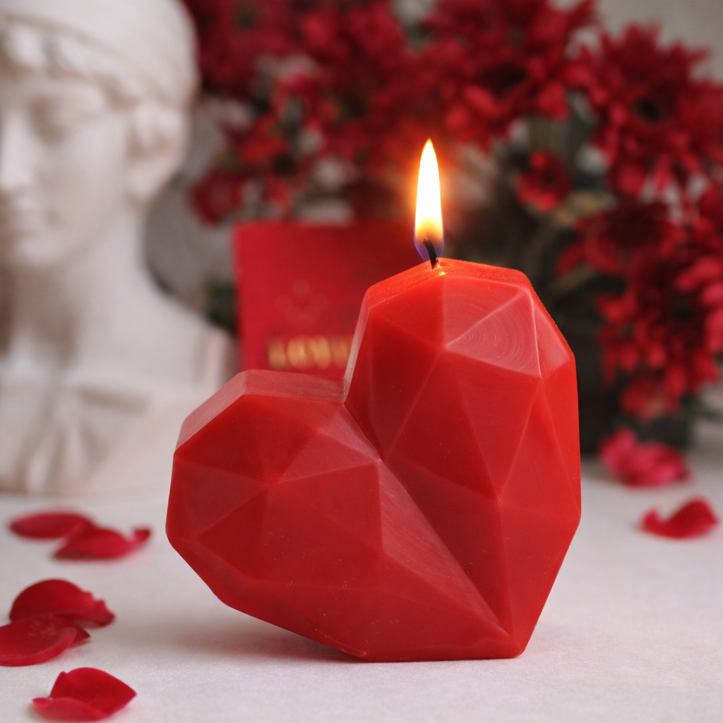 Lot de 5 Bougies Cœur Rouge Géométrique – Cadeau Romantique Amour & Saint-Valent