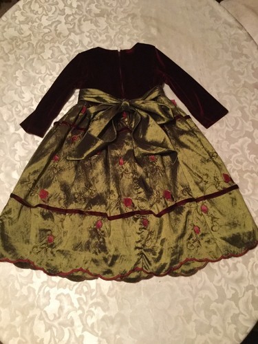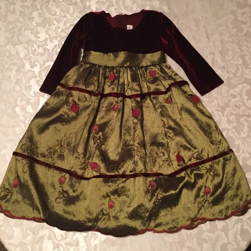 Winter Size 2T Crayon Kids dress burgundy & green long floral holiday