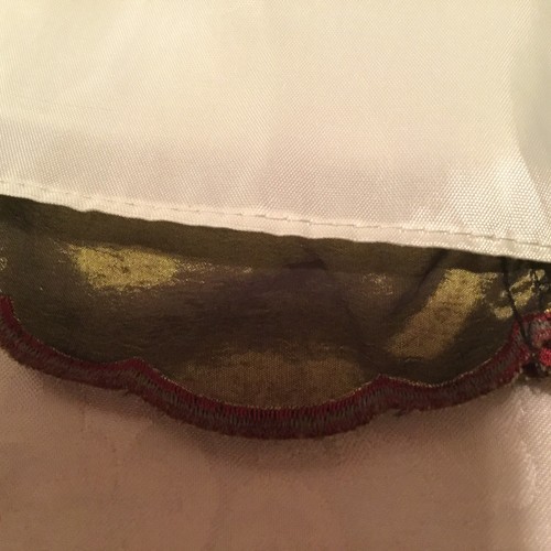 Bottom - green satin with burgandy rose buds and trim.
