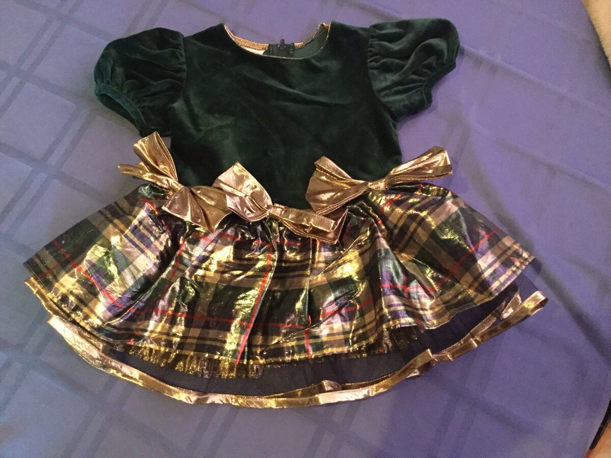 Wintern Size 2T Bonnie Jean dress green velvet plaid holiday new
