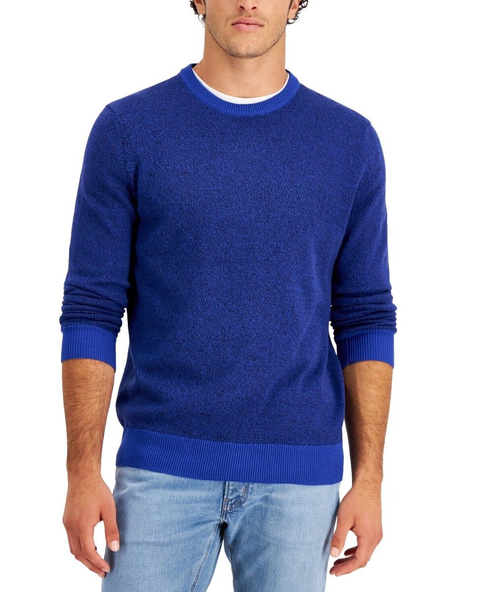 Club Room Men's Elevated Cotton Marl Sweater in Cerulean Marl Blue-Size 2XL