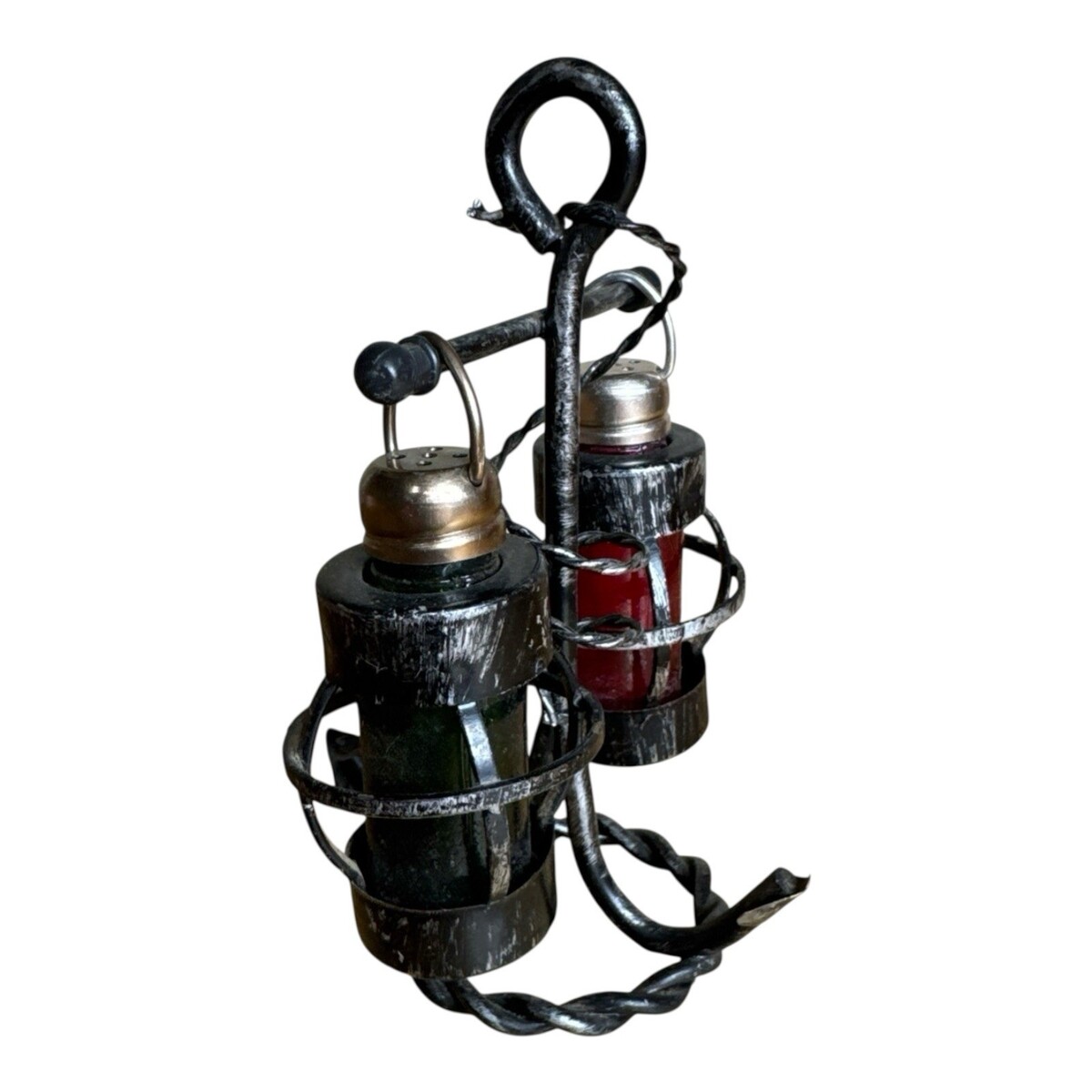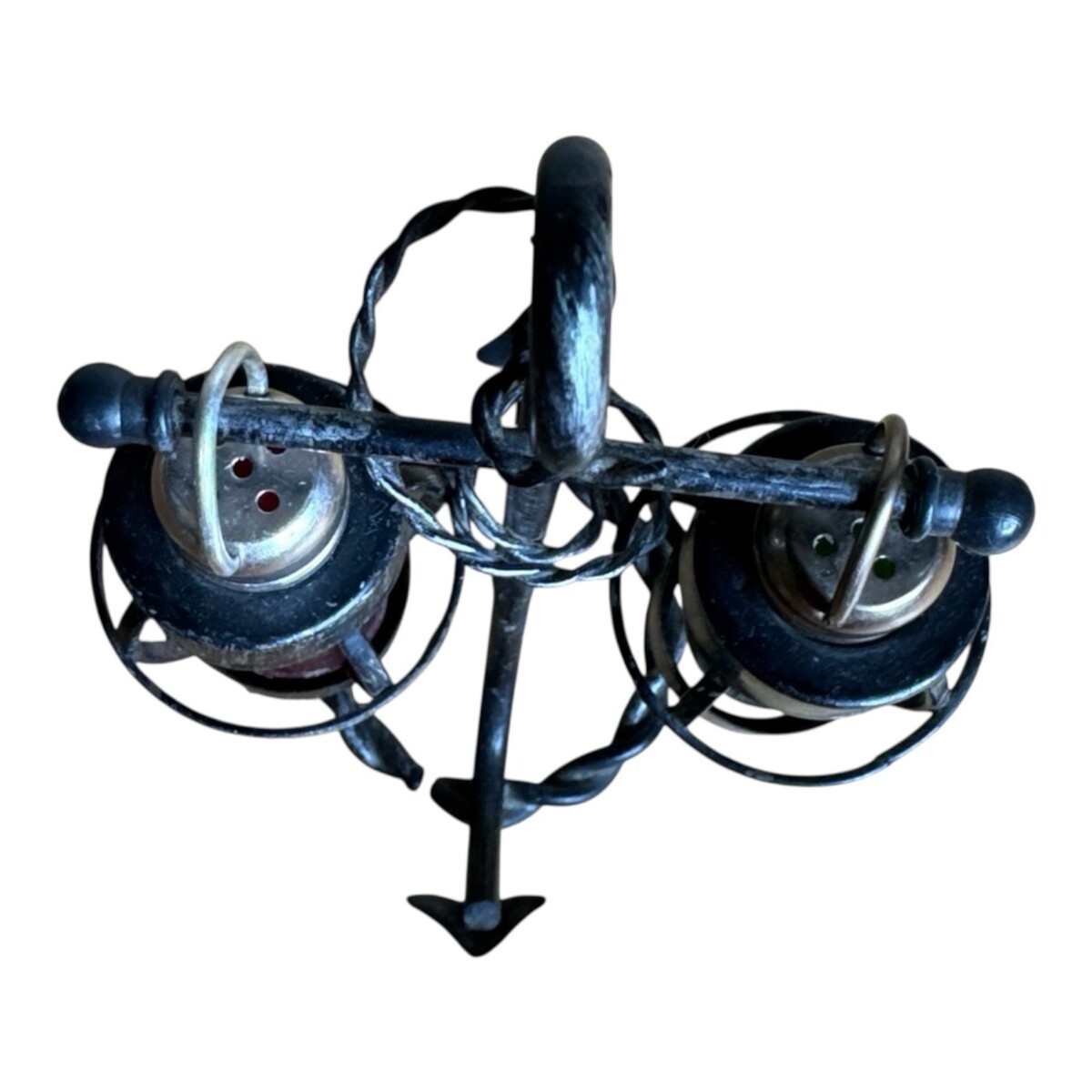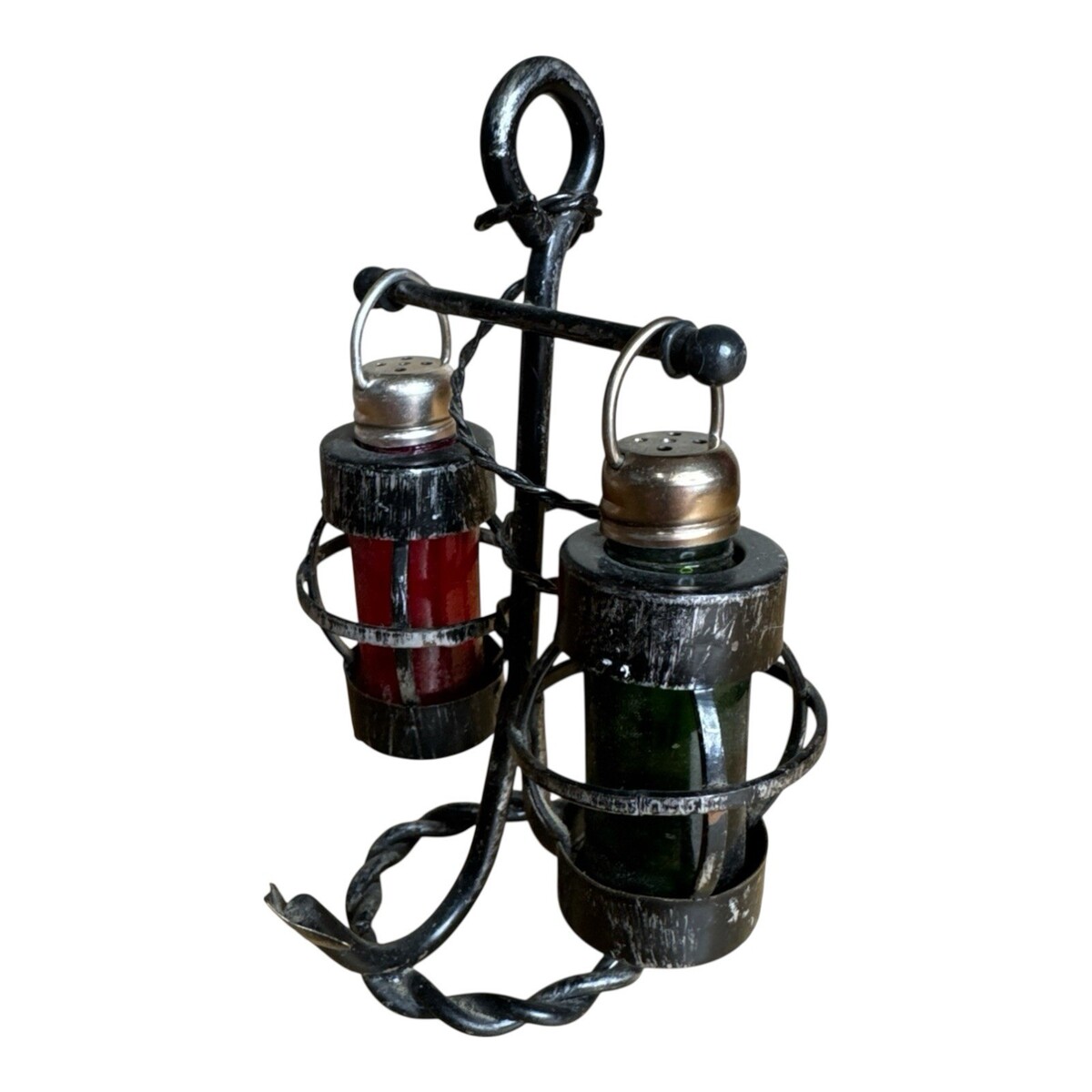 Vintage Nautical Lantern Salt & Pepper Shakers Red Green Hanging On Anchor Stand