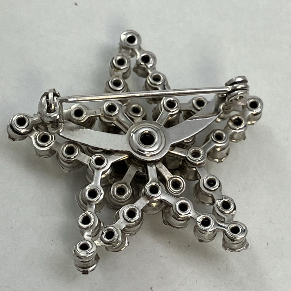This Eastern Star Masonic Clear Rhinestone Enamel Vintage Pin Brooch is a unique and eye-catching piece of fashion jewelry. This vintage brooch features a star-shaped design with clear rhinestones set in a silver enamel setting, adding a touch of Masonic symbolism to the piece. The brooch measures approximately 1.5 inches in length and 1.3 inches in width, making it a versatile accessory that can be worn on various occasions. With its original design and vintage charm, this brooch is sure to make a statement in any jewelry collection.