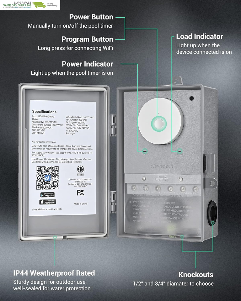 [Heavy Duty Weatherproof ] With max of 40 Amp 120 - 277 VAC, 2HP load, sturdy sealed cover and waterproof pad, this pool controller is ideal for outdoor/indoor heavy-duty appliances like pool pump, water heater, pool filter, spa, irrigation system, landscape light, etc. The operating temperatures range from -40? to 140 ?