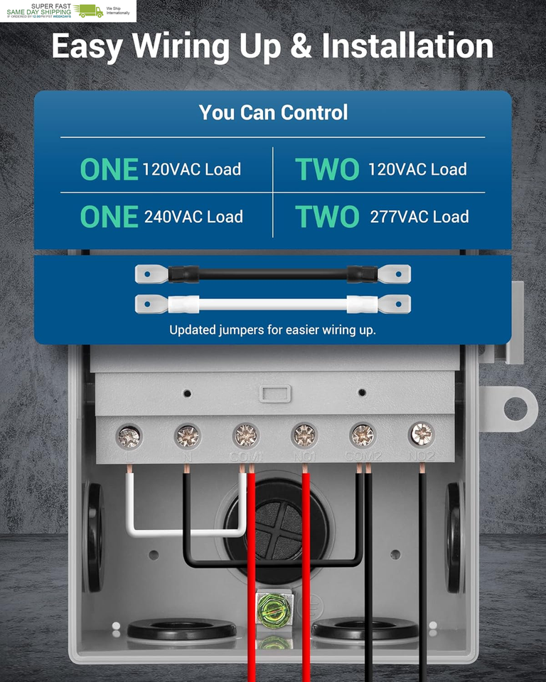 [Easy to Wire Set] The pool timer is WiFi enabled, effortlessly integrated with your existing router without any additional setup. There are two updated jumper wires coming with the package, which ensure a smooth and trouble-free wiring process. A hanging mount point at the top allows you to directly hang it on the wall