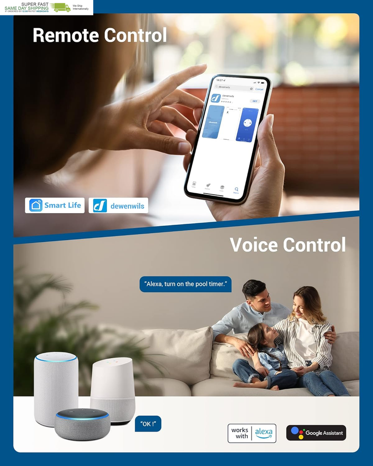 Use simple voice commands to control your devices with Alexa and Google Assistant.