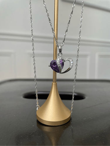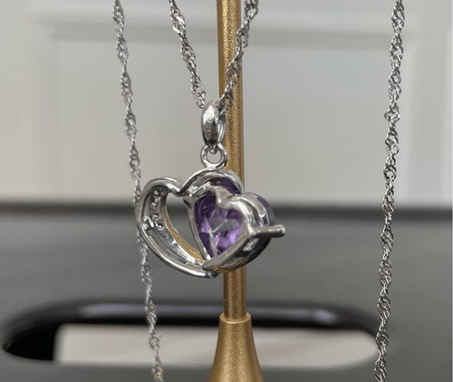 Jeulia 925 Silver Double Heart Pendant Necklace Amethyst CZ Stone Pendant