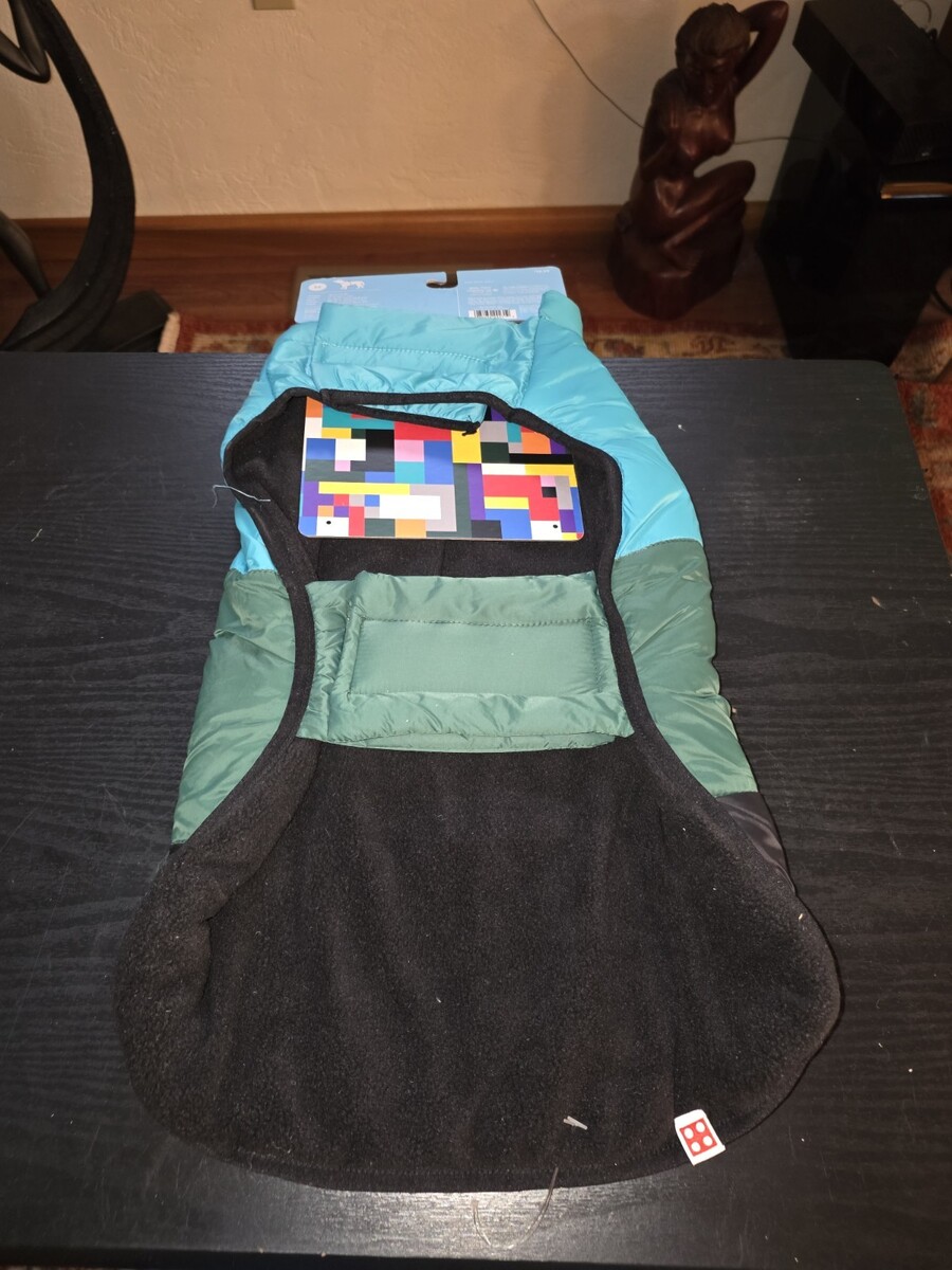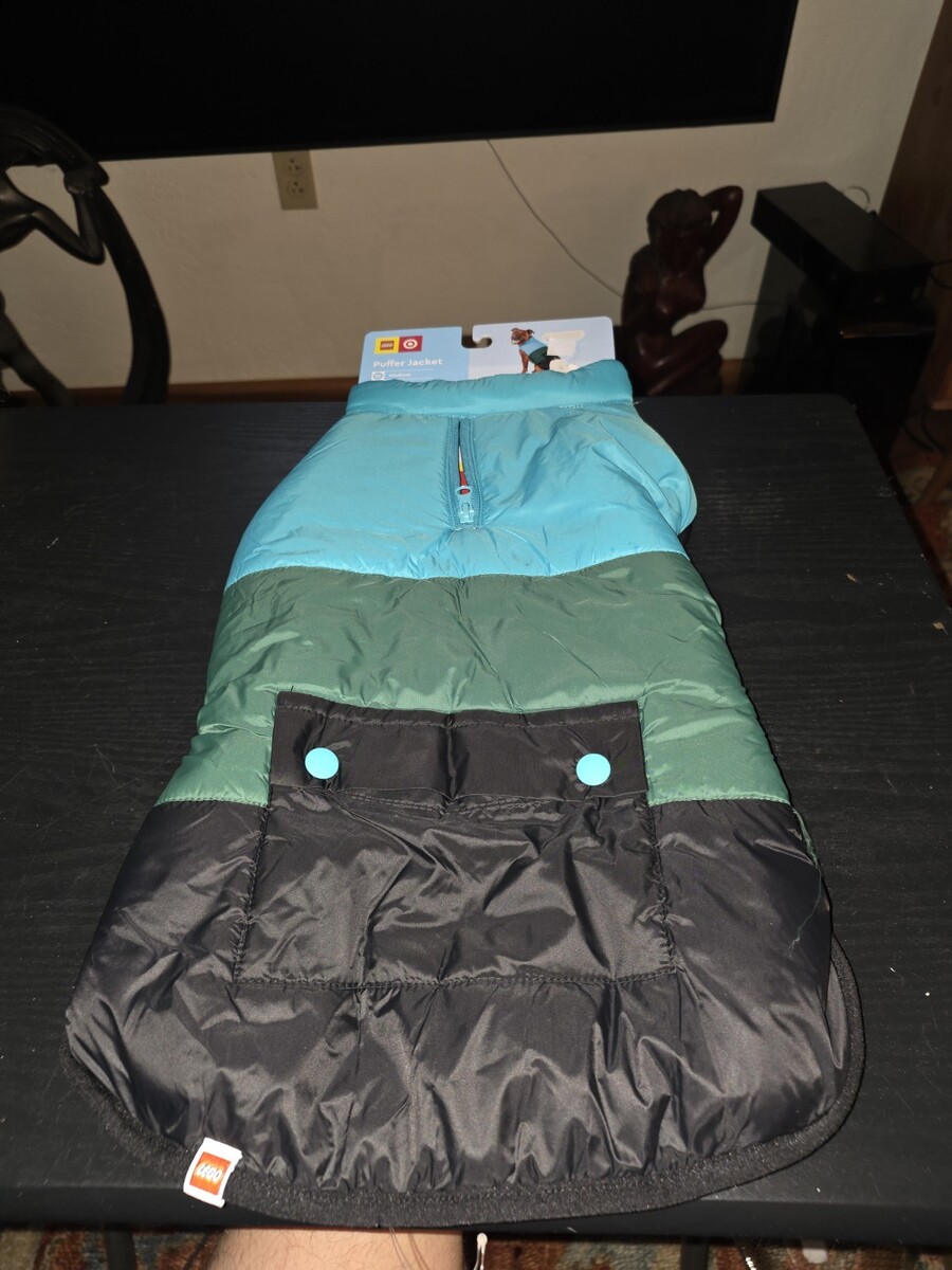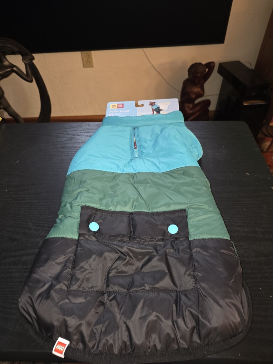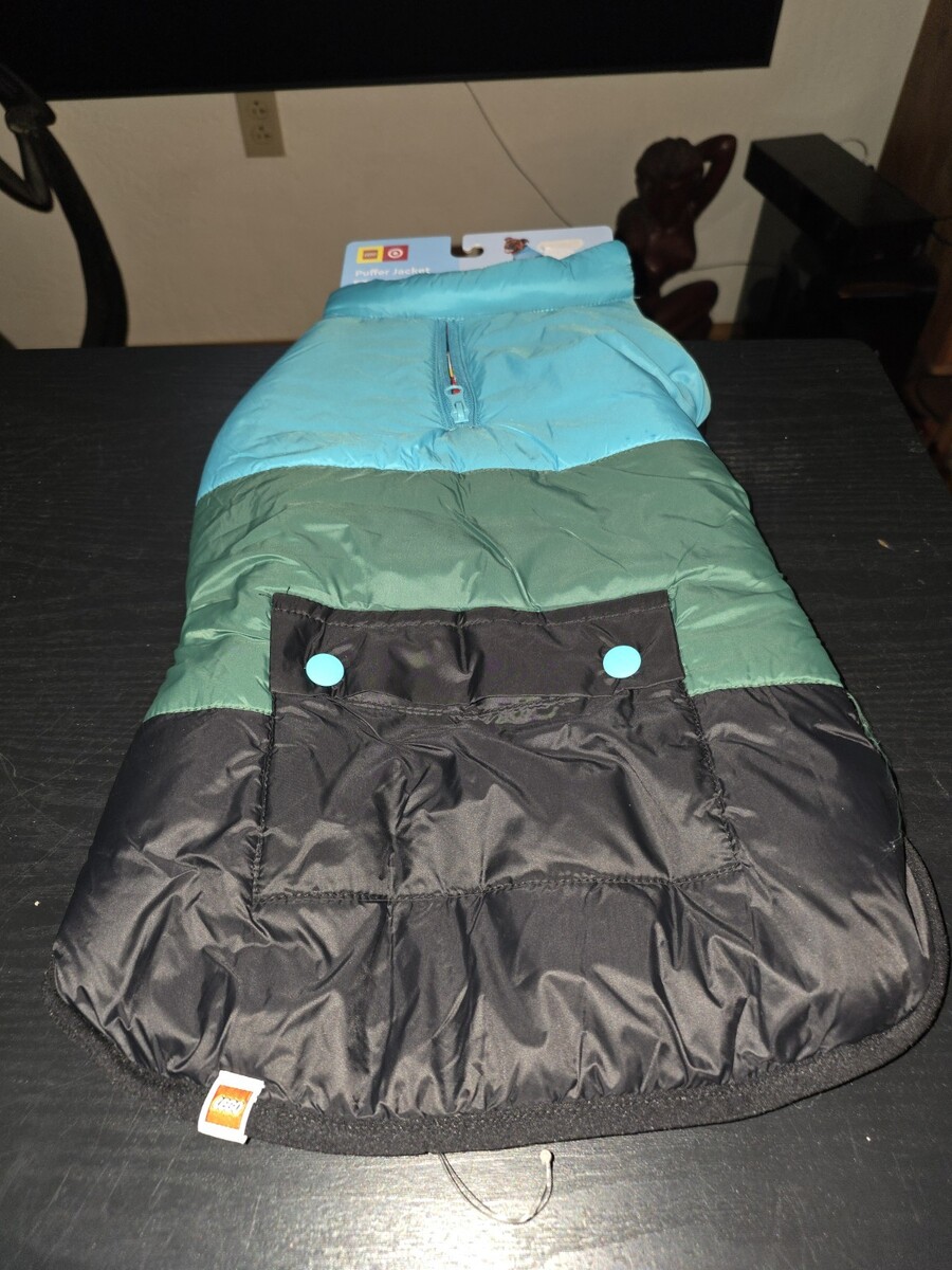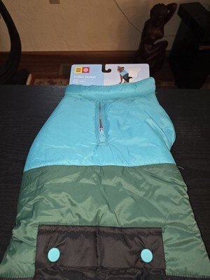 LEGO Dog/Cat Color Block Puffer WINTER WARM COAT (MED) JACKET Medium Green Blue