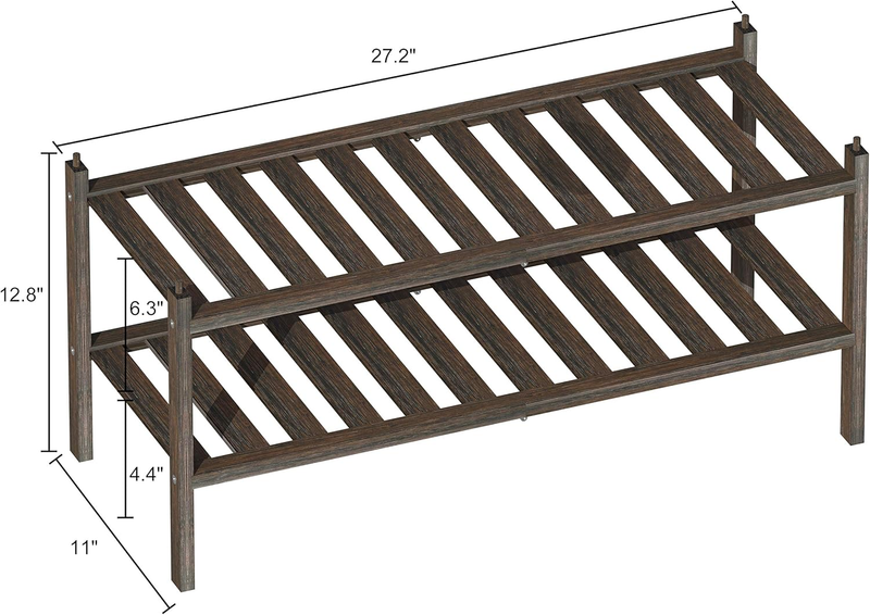 Bamboo 2-Tier Shoe Rack Stackable Shelf Storage Organizer for Entryway, Hallway and Closet, 27.2"X11"X13.2" (Mocha)