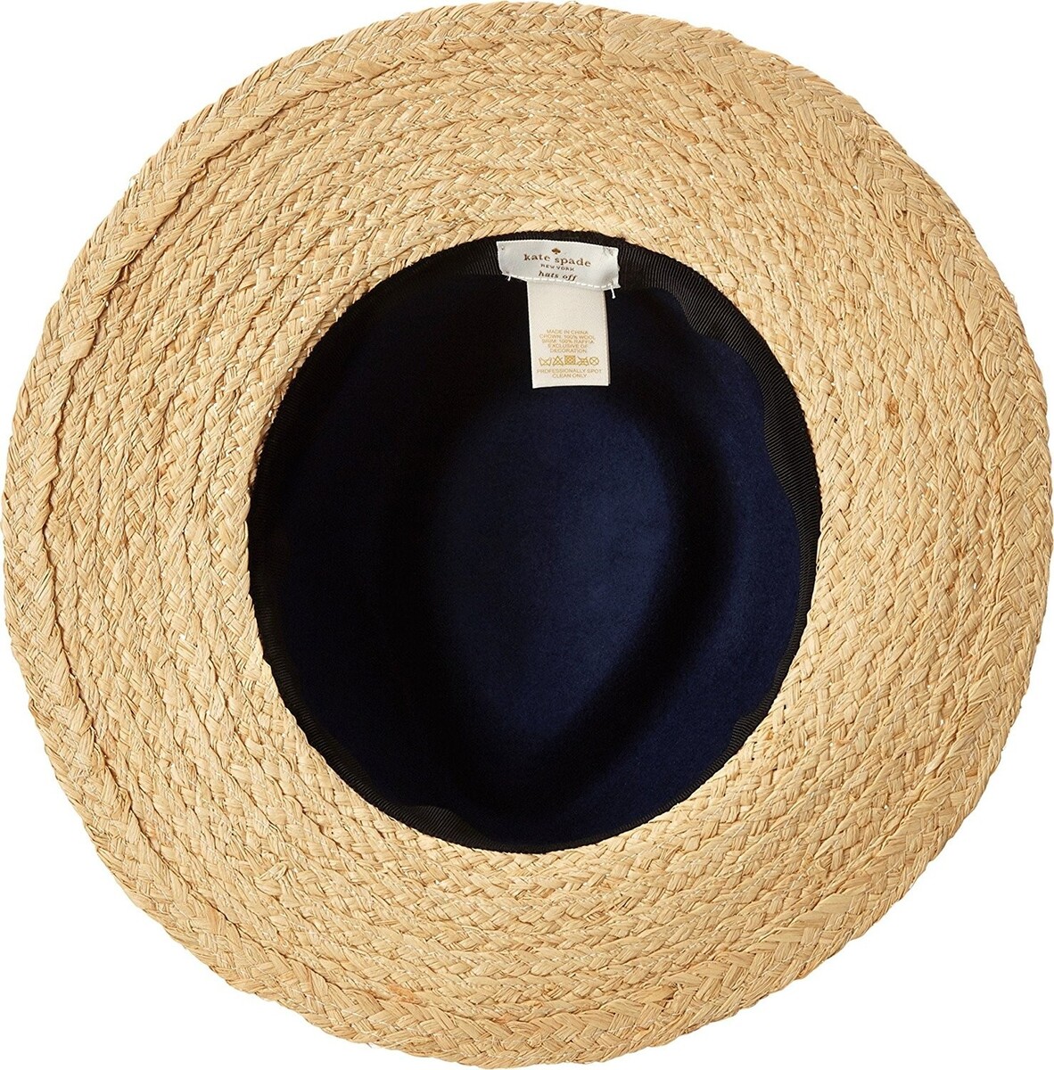 Kate Spade New York Wool Crown Straw Brim Fedora Navy ONE SIZE