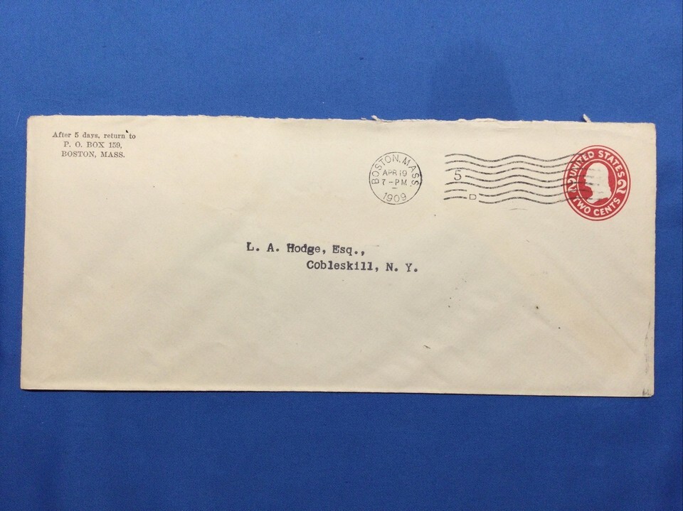 TWO CENTS 2 Printed Mailing Envelope Vintage 1909 BOSTON MA