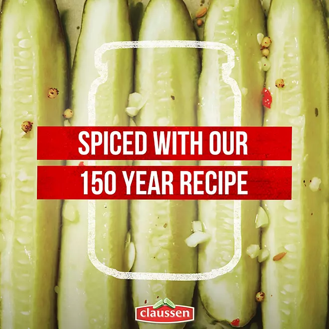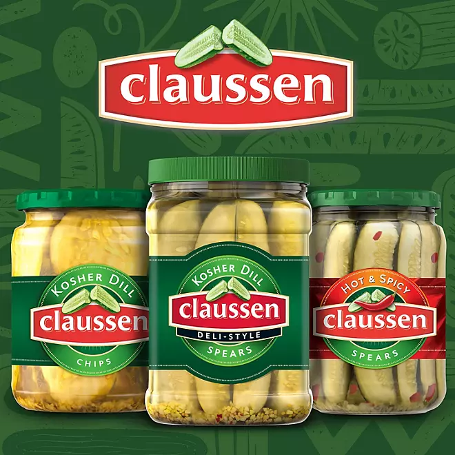 Add a sweet and juicy crunch to your summer with Claussen Deli-Style Kosher Dill Pickle Spears. Our Claussen deli-style pickle spears are crafted with fresh cucumbers picked straight from the vine for our classic Claussen crunch. Pickled with a unique spice blend of turmeric, garlic and red pepper, our deli-style dill pickle spears are great served on the side with your burgers, hot dogs and sandwiches. Claussen pickles are vegan, Kosher Certified and a fat free food, making them a delicious snack. They also make a great addition to your charcuterie board. Our 80-ounce resealable jar of deli-style pickle spears. Whether you enjoy pickle chips or spears, slices or wholes, you can't beat Claussen's mouthwatering crunch.