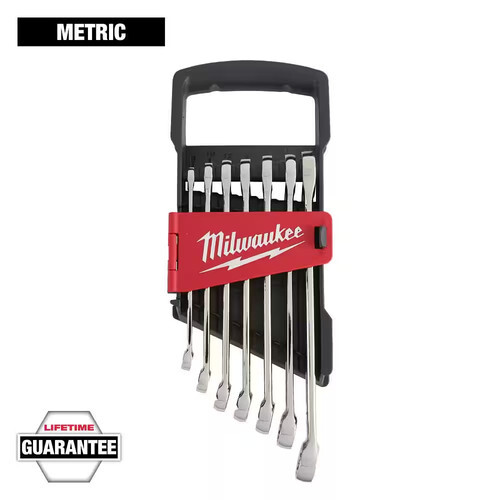 The 10 Piece Combination Wrench Set (SAE) includes deep laser etched markings to help identify wrench sizes. The wrenches have a 15 degree offset for knuckle clearance.