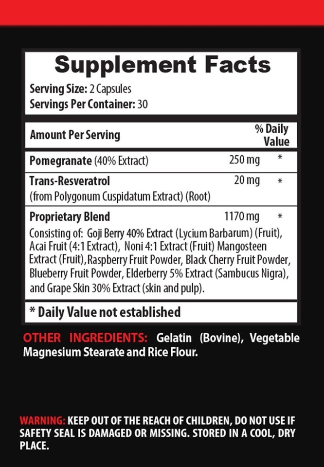 With: Acai Fruit, Goji Berry, Noni Extract and Trans-Resveratrol