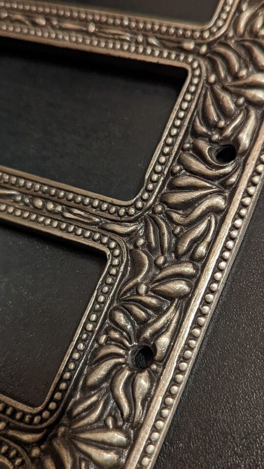 This is for a beautiful Vicenza light switch plate for dimmer style or the wide rocker type light switches. Made in the USA of solid pewter. This is very heavy and very well made. Screws included. The design is 'San Michele' and the finish is 'vintage pewter.'