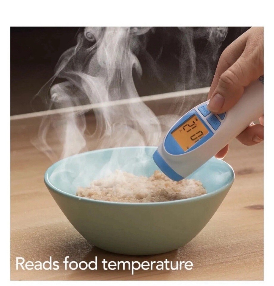 Vicks No Touch 3-in-1 Thermometer Measures Forehead Food and Bath Temperatures.