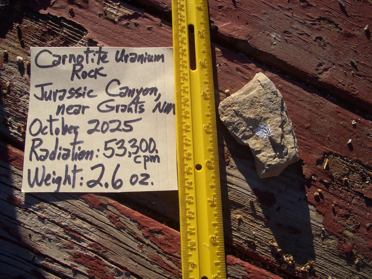 CARNOTITE URANIUM ROCK 2.6 OZ 53,300. CPM JURASSIC CANYON $35.00 +$12.80 S/H