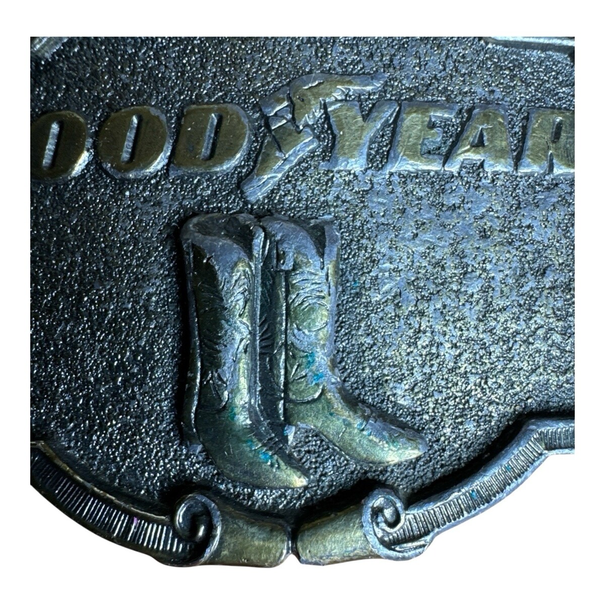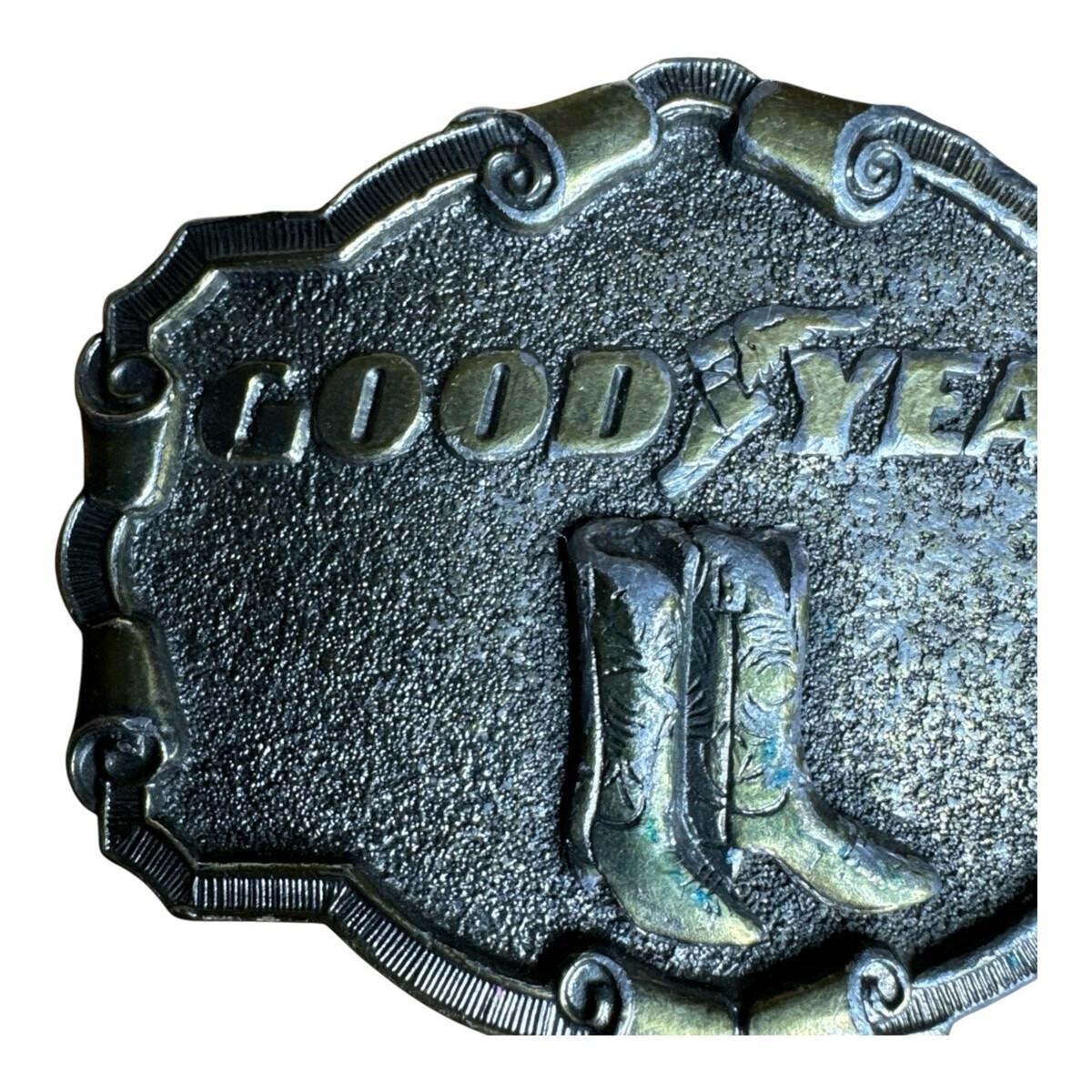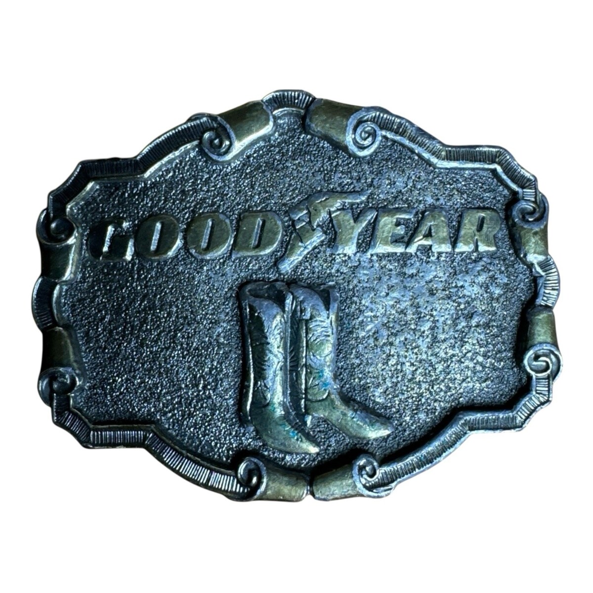 Vintage Goodyear Tires Belt Buckle Cowboy Boots Silver Tone Country Western READ