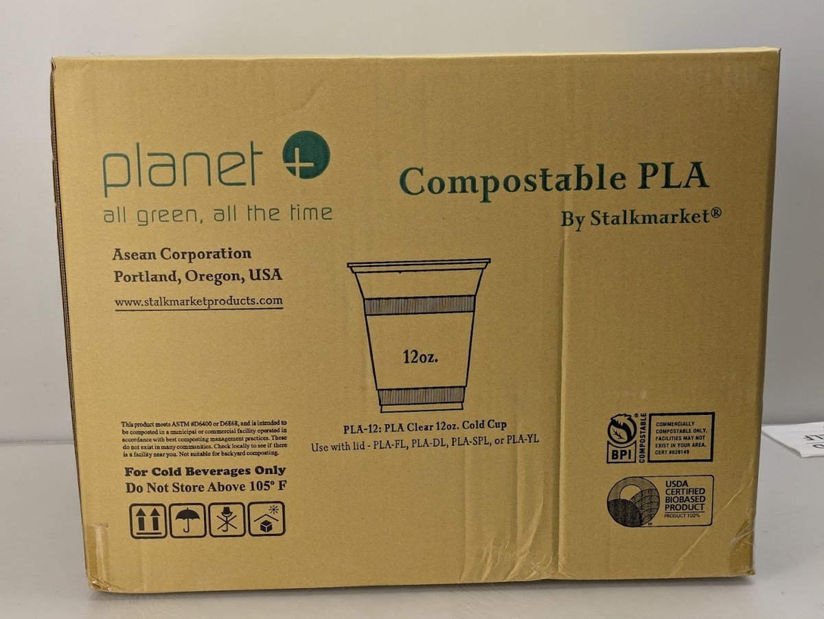 Planet+ 100% Compostable PLA Clear Cold Cup, 12 Oz, Pack of 1000 PLA-12 No Lid