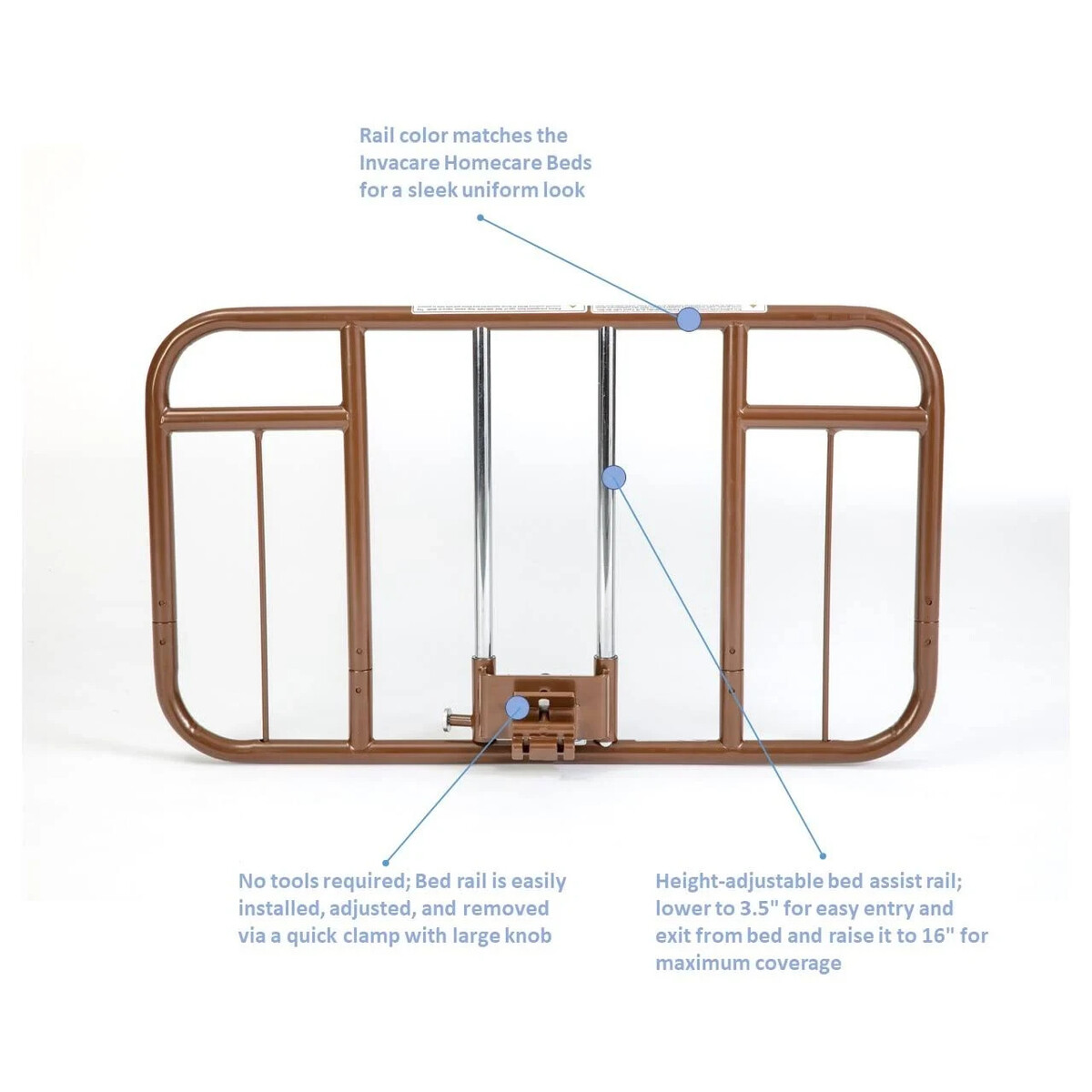 Invacare Clamp-On Half-Length Rails for Homecare Beds, Bed Rail Brown 6630DS