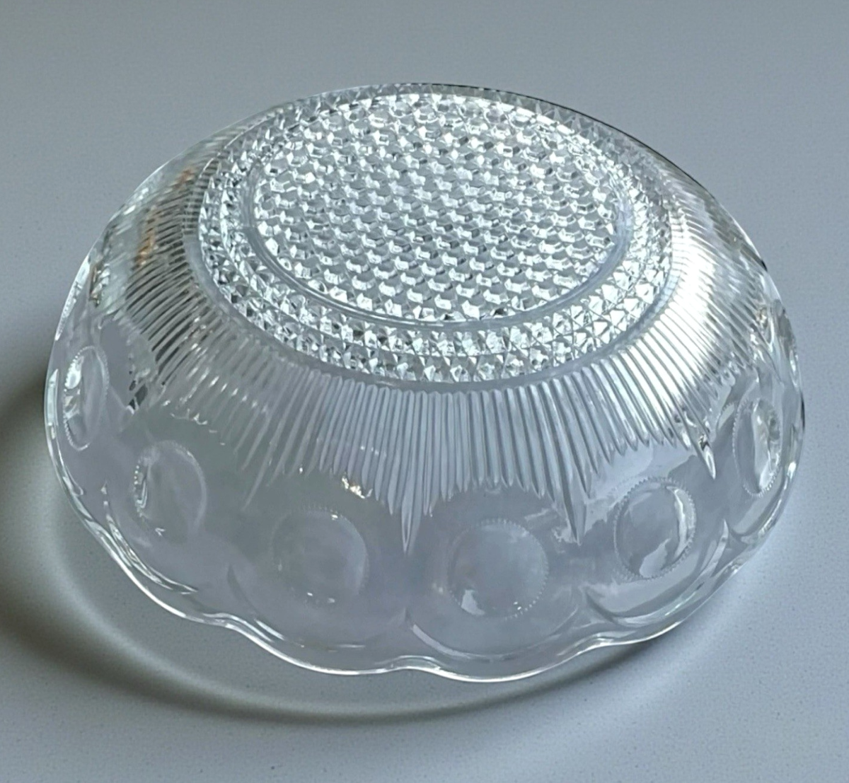 Hobnail Glass Serving Bowl 8.5" Clear Cameo Pattern Scalloped Edge Fruit Bowl