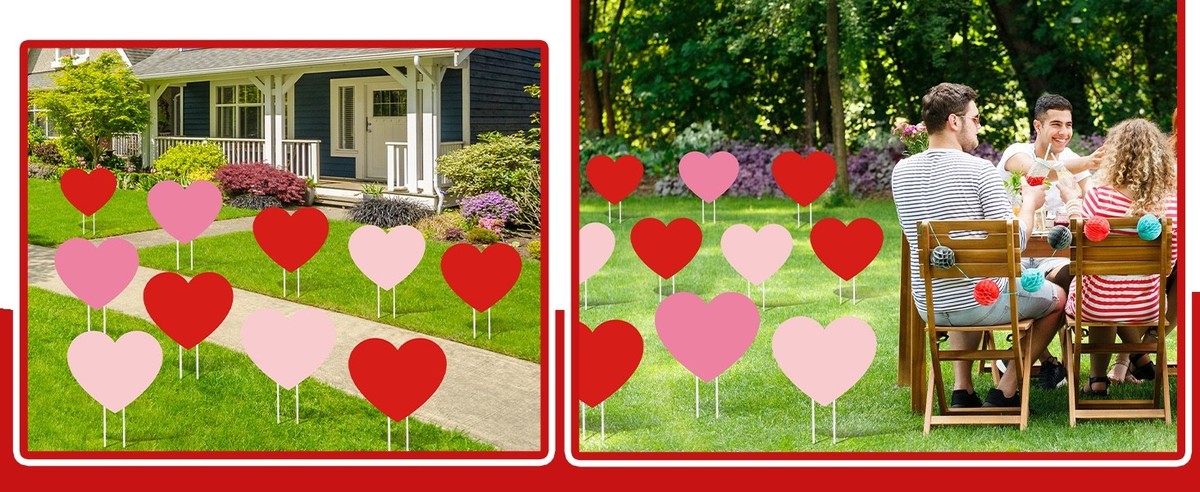 Sweet for Valentine's Day and year-round display, these fancy hearts offer bright color, festive charm and swoon-worthy style ? easily staking in planters, pots, garden or lawn. Crafted of 100% corrugated plastic for lasting durability, the pretty heart garden stakes boasts sweet colors of red and pink. These love hearts can highlight the romantic atmosphere. Place these Valentine decorations in planters and pots outdoors, or display them around your home for added fun on Valentine's Day or any day.