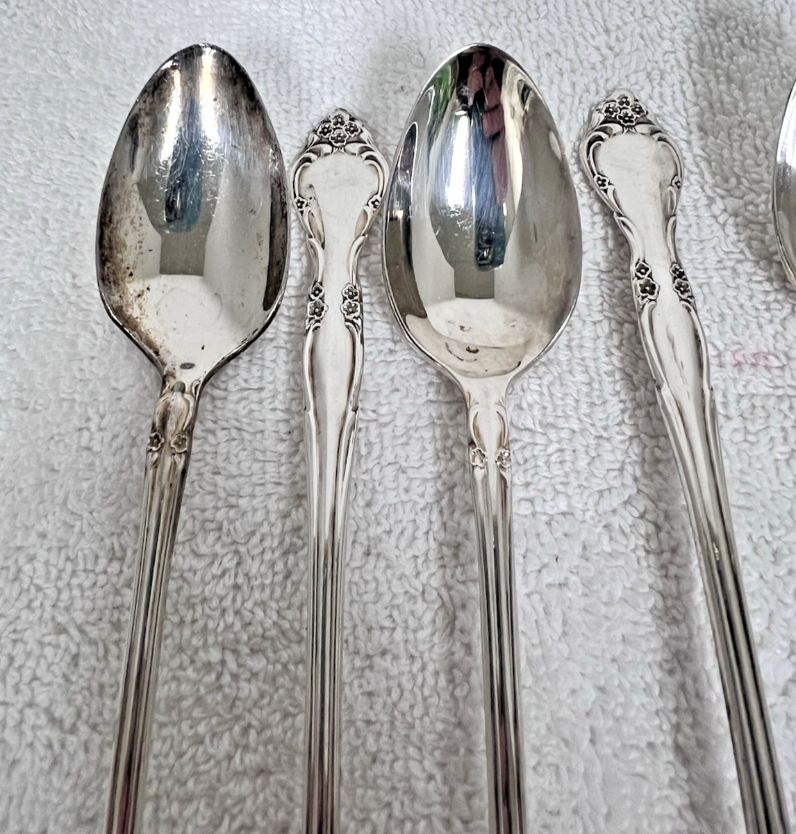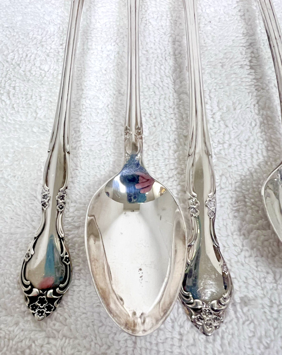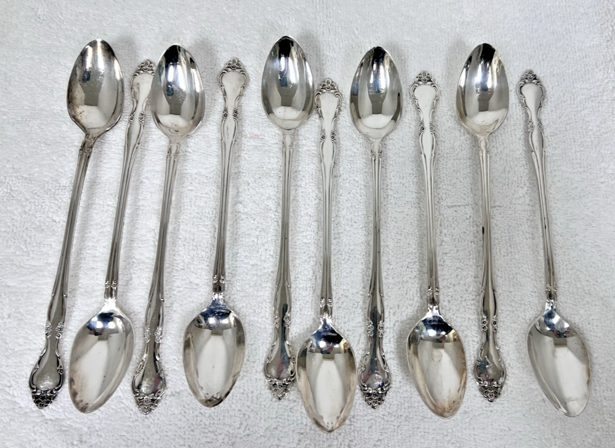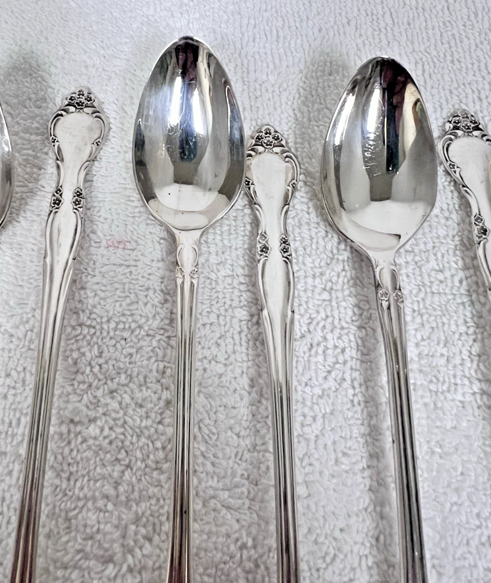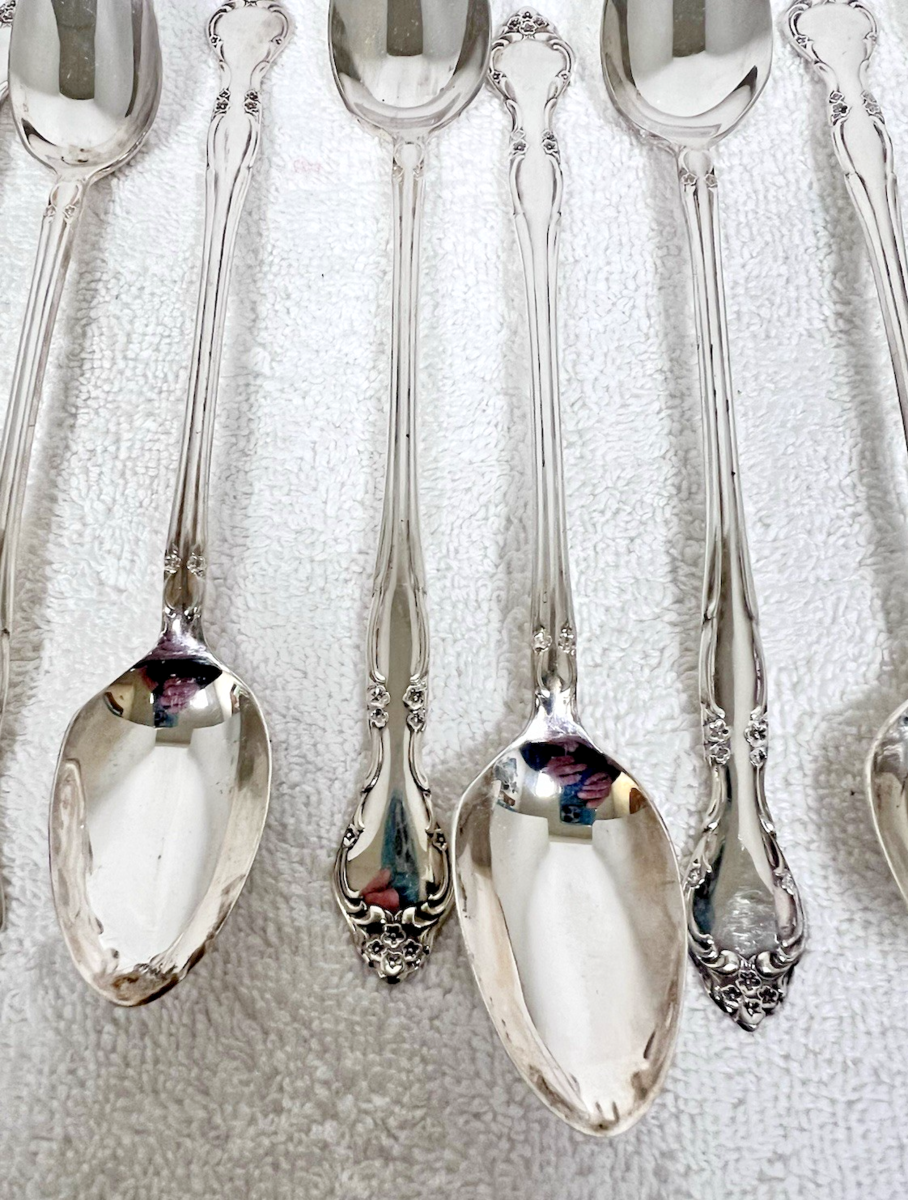Set of 10 Vintage 1960 Oneida Community Affection Floral Silverplate Iced Tea Spoons 7.5". Great condition might need cleaning. No monogram