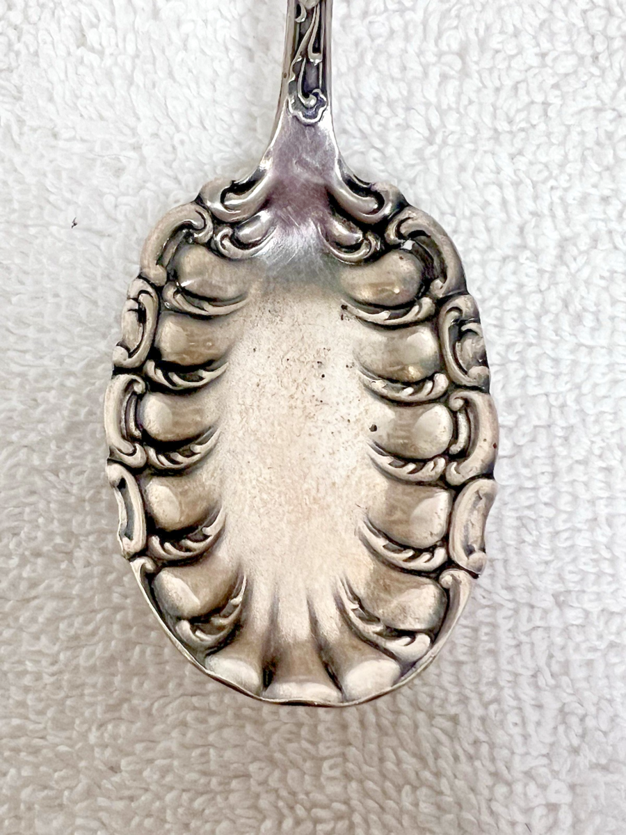 1847 Rogers Bros Antique Silver Plate 1893 Columbia Shell Sugar Spoon 5 3/4"