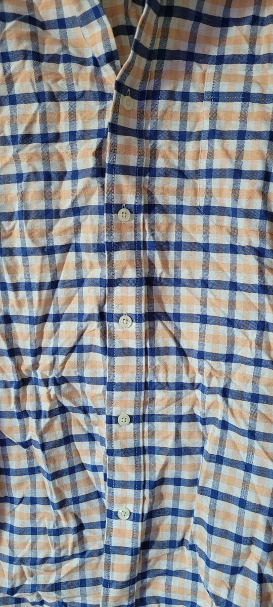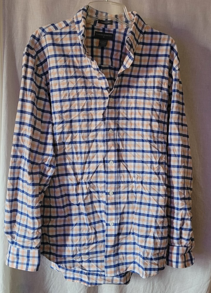 Men's Saddlebred Shirt Size Large Blue White Light Orange Checkered Casual