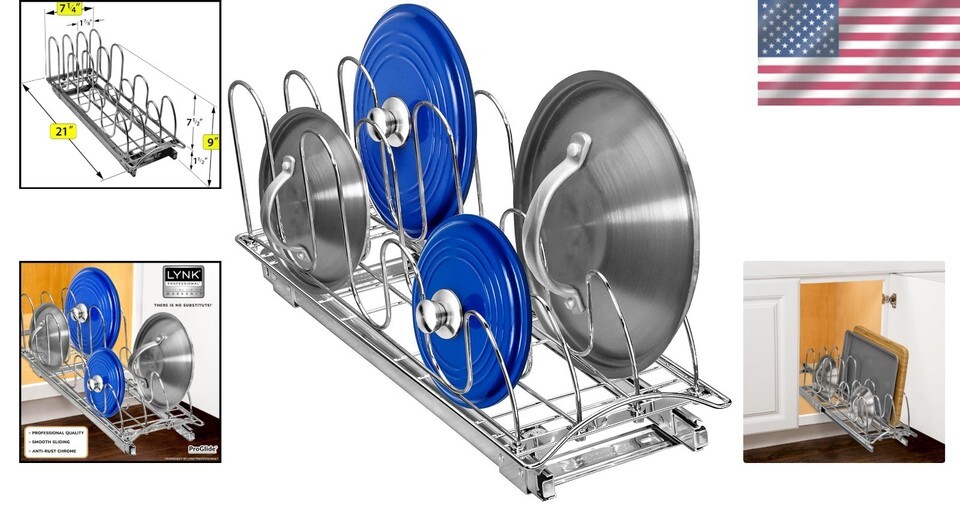 Durable Sliding Kitchen Organizer for Pots and Lids - Smooth Gliding Chrome Rack